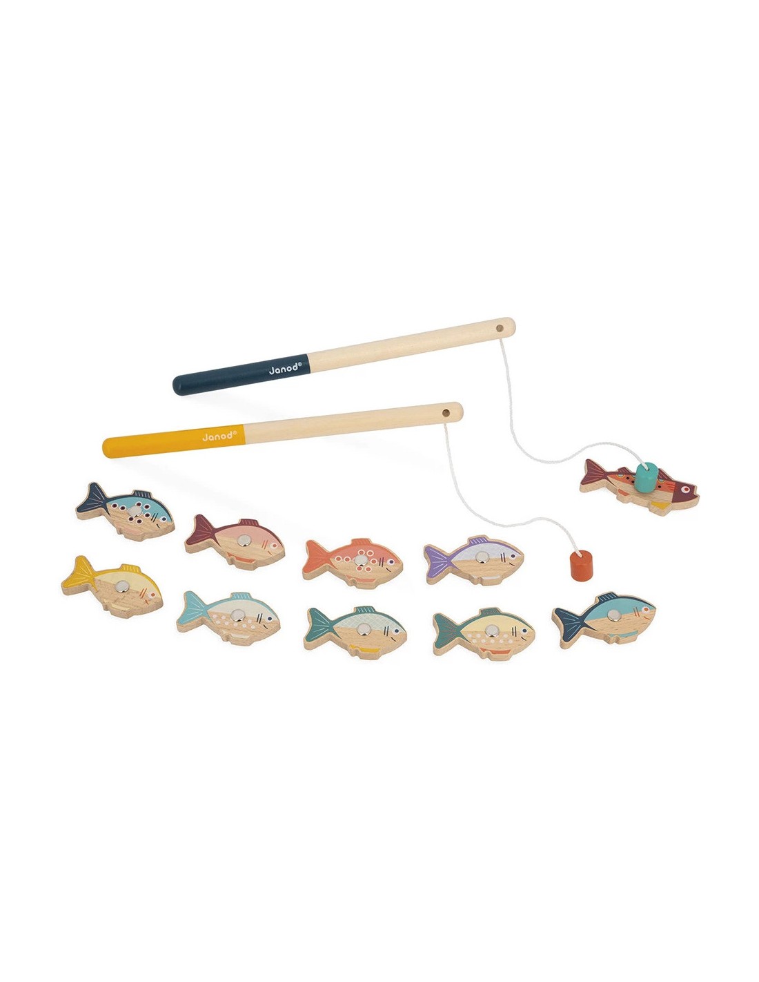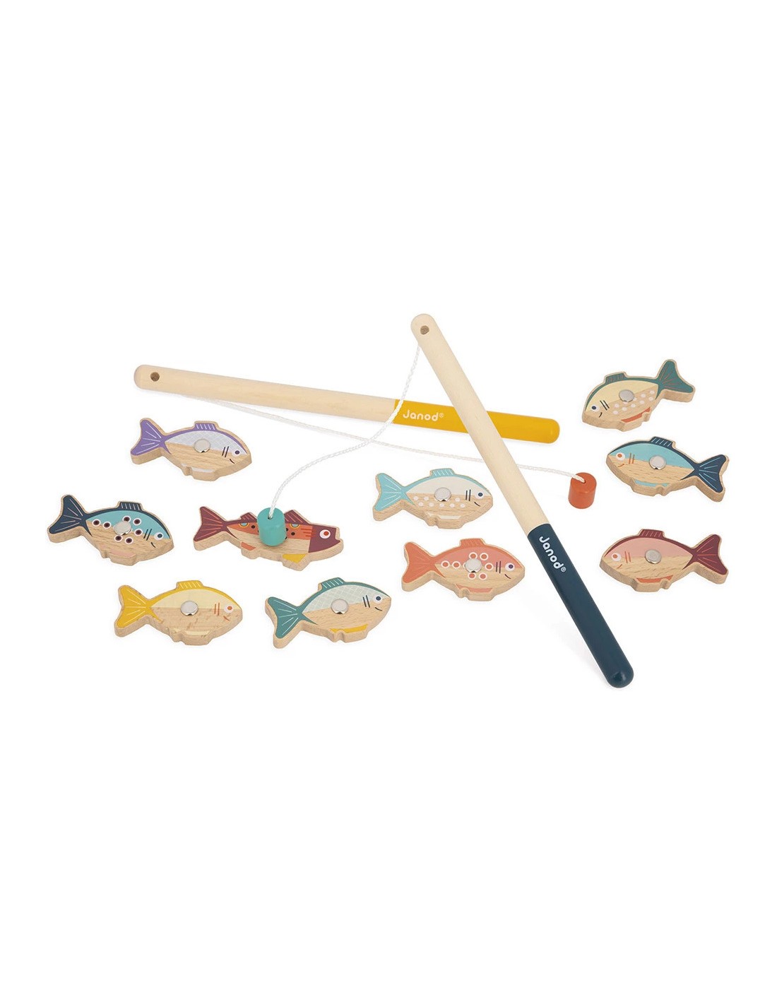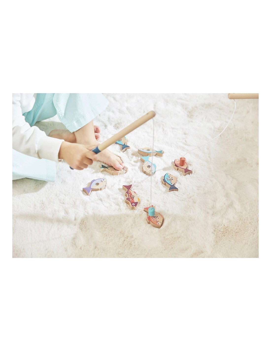 On dirait que ça mord à l'hameçon ! Ce jeu de pêche à la ligne en bois va amuser les tout-petits dès 2 ans ! À l'aide de deux cannes en bois équipées d'un aimant, les enfants attrapent les jolis poissons colorés. C'est à celui qui en attrapera le plus ! Chaque poisson possède une pastille métallique pour faciliter la prise.