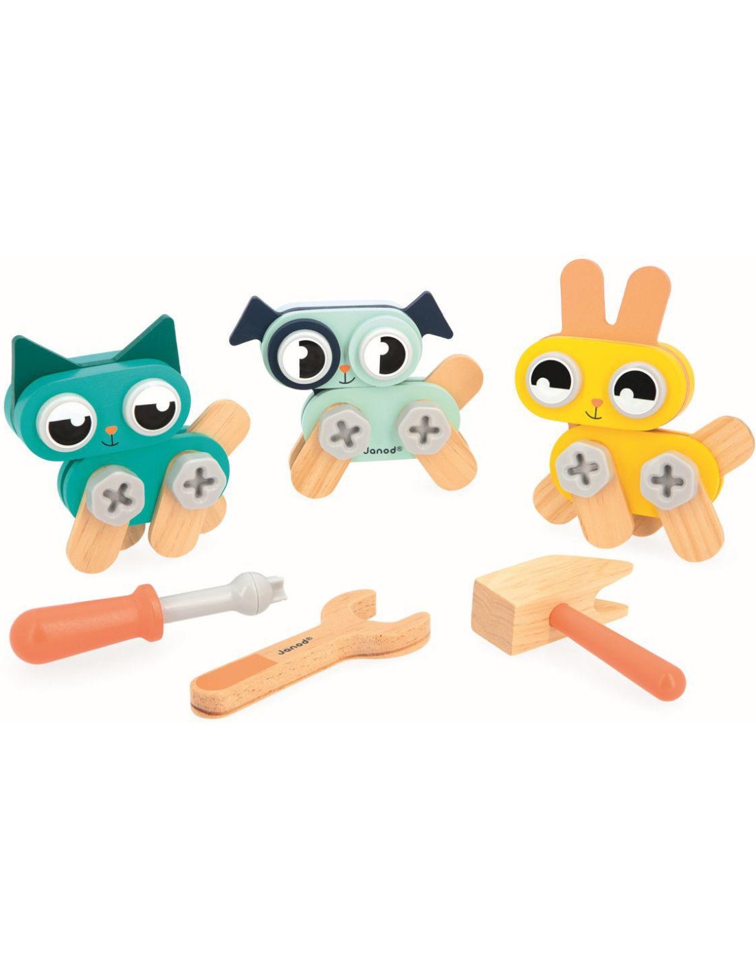 Petit animaux à bricoler de Janod. Un chat, un chien et à lapin à assembler.