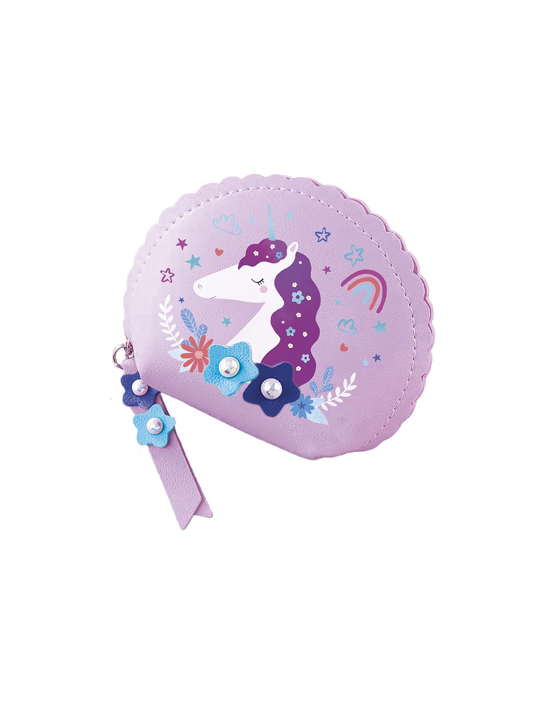 Facile à manipuler par les petits, voilà un porte-monnaie parfait pour emporter ses économies avec style ! Ce porte-monnaie pour enfant en similicuir est une chouette idée cadeau pour les petits en quête d’autonomie ou qui apprennent à compter avec des pièces, par exemple. Plongez dans l'univers de la collection "Dreamland", des kits de loisirs créatifs et de papeterie pour enfant sur le thème des licornes, dans un style coloré original.