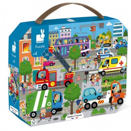 Tout en s'amusant, avec ce puzzle City de Janod, votre bout de chou (de 4 à 6 ans) va découvrir l'animation d'une ville et imaginer plein d'histoires.