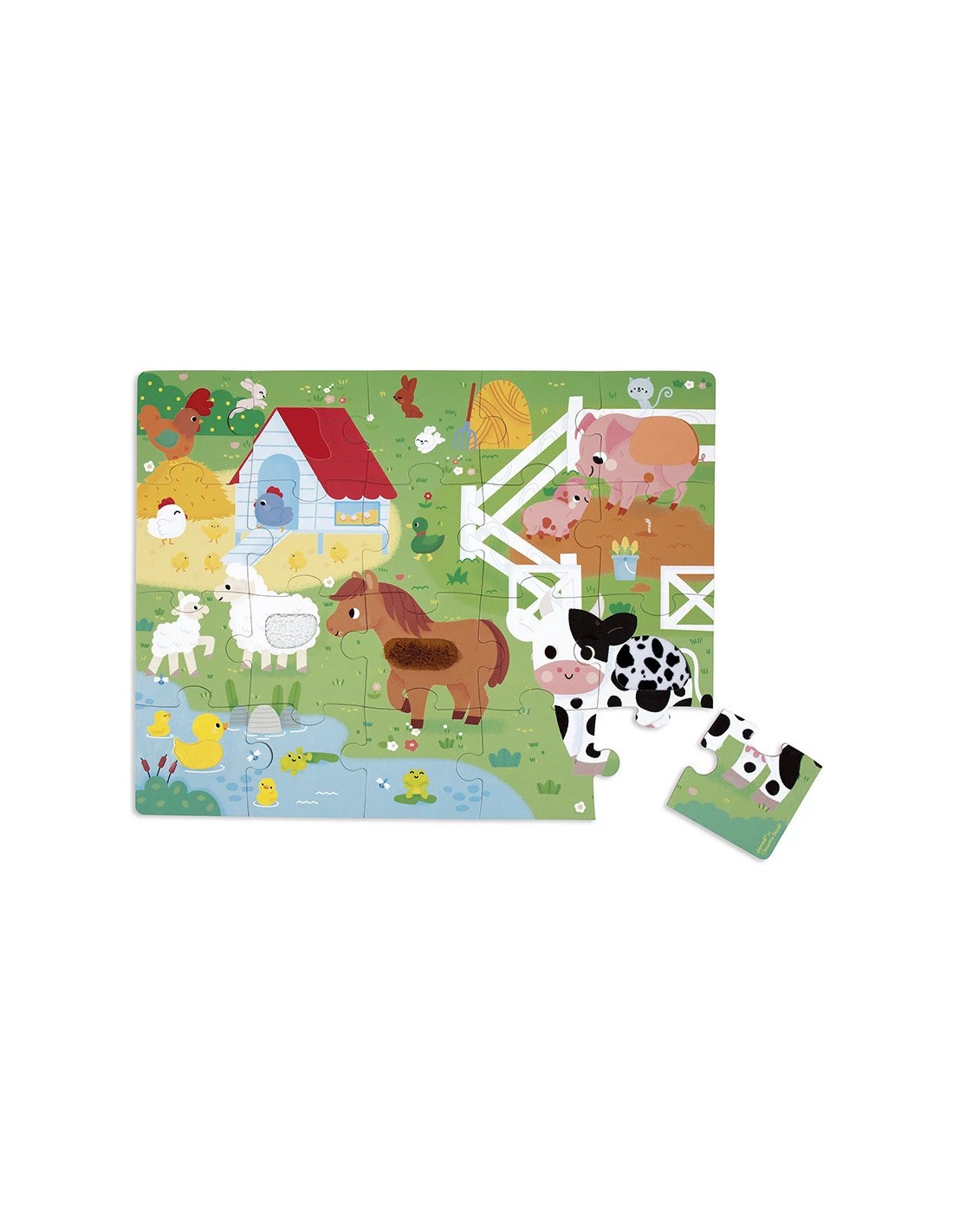 Les enfants vont adorer ce puzzle tactile géant sur le thème de la ferme. Après avoir réalisé un beau puzzle de 20 pièces, ils pourront découvrir différentes textures et matières un peu partout sur le puzzle et développeront ainsi leur sens du toucher et de l'observation.