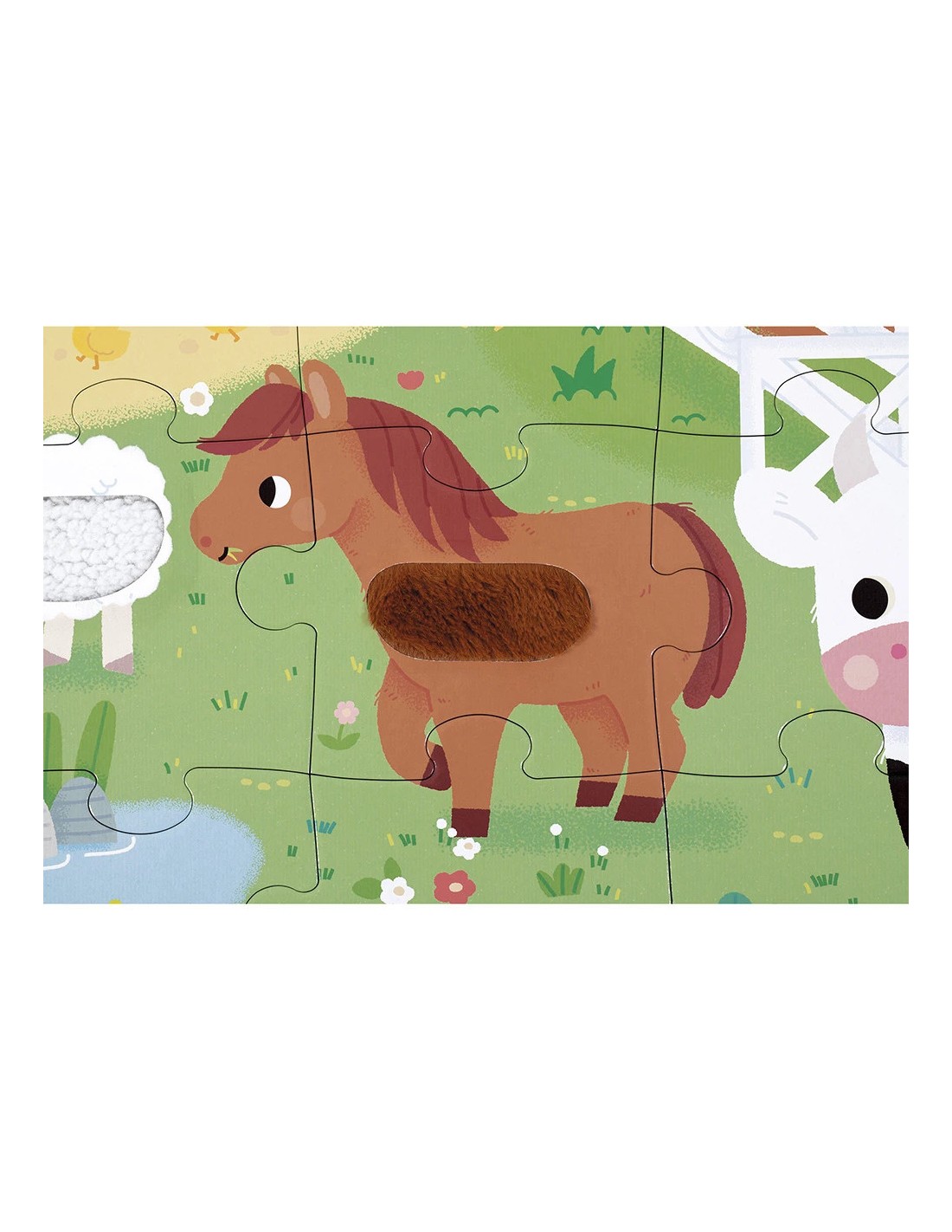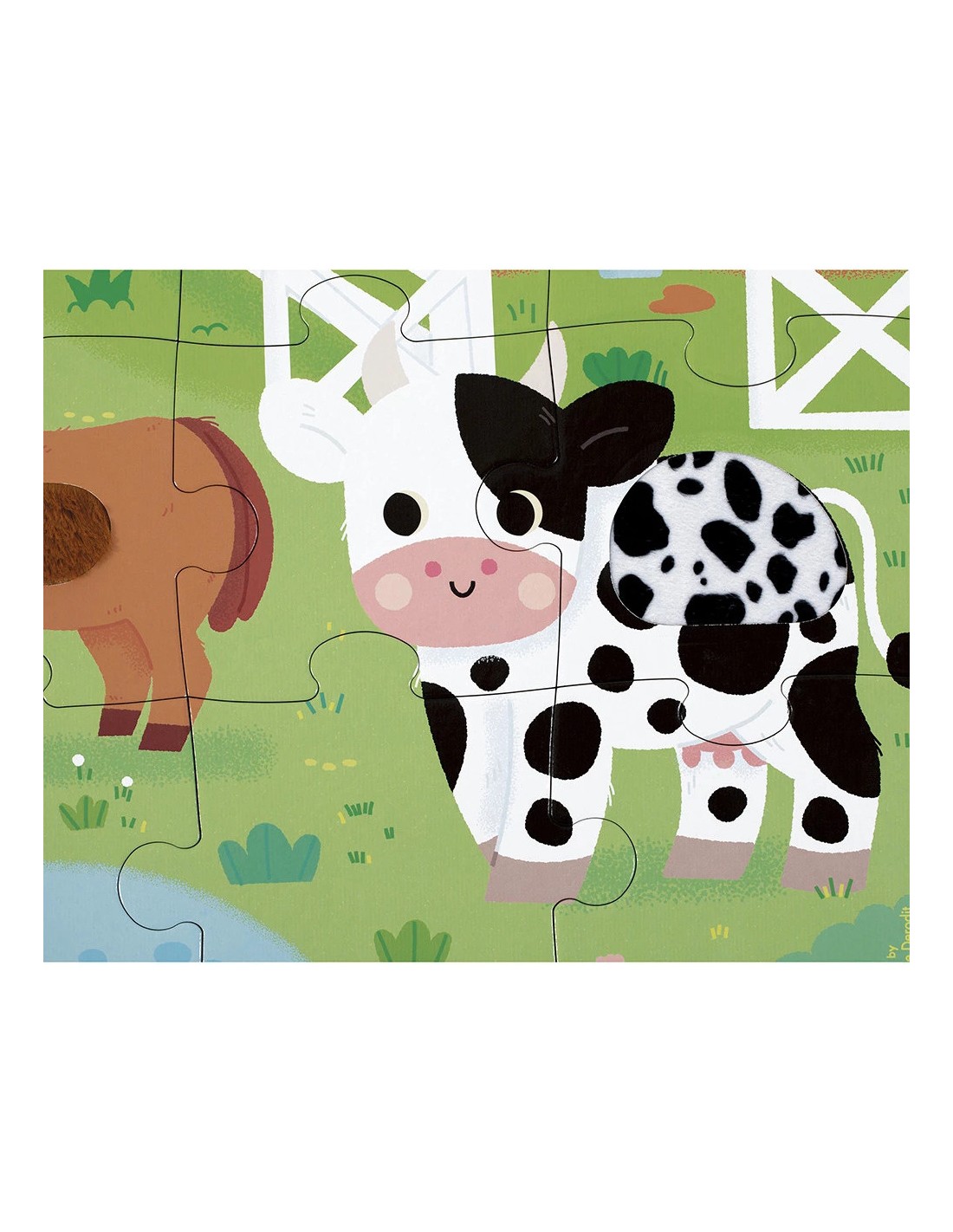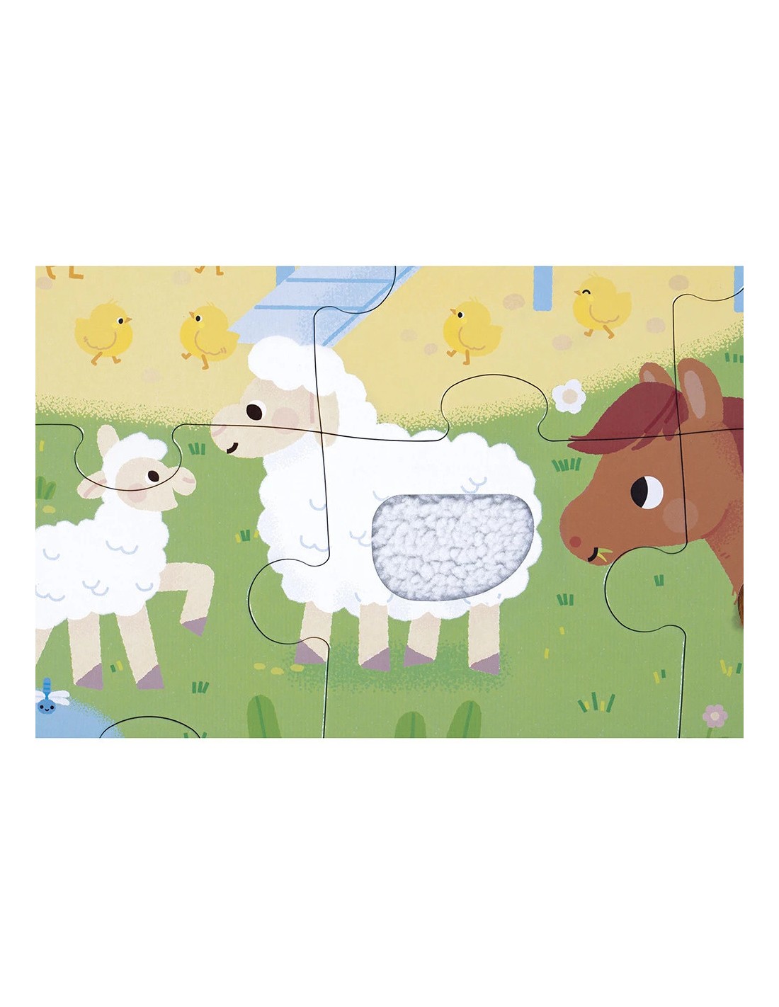 Pelage de vache et de mouton, queue du lapin, duvet du canard, crête du coq : de nombreuses imitations de textures sont à explorer du bout des doigts ! Livré avec un poster servant de modèle pour les petits débutants, ils pourront ensuite réaliser leur puzzle sans modèle lorsqu'ils gagneront en autonomie.