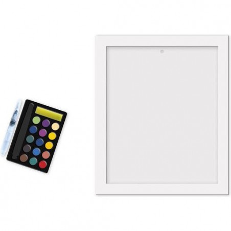 On adore d'abord le principe du pinceau à réservoir d'eau pour faciliter l'application des couleurs de la palette aquarelle de 15 teintes. Ensuite, quelle bonne idée ces traits en dorure qui empêchent de dépasser et donc de mélanger les couleurs ! Ils donnent en plus un rendu très raffiné aux tableaux.