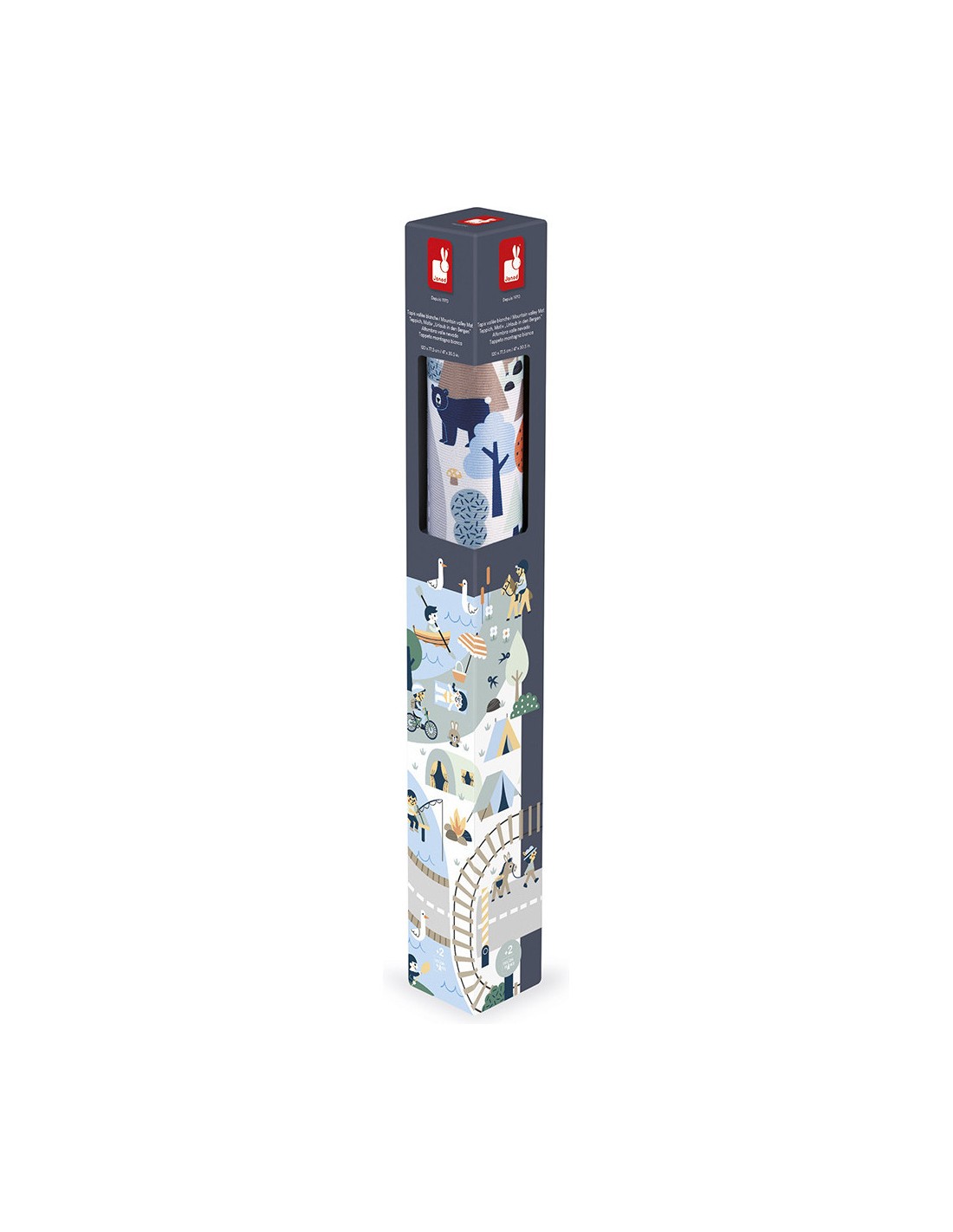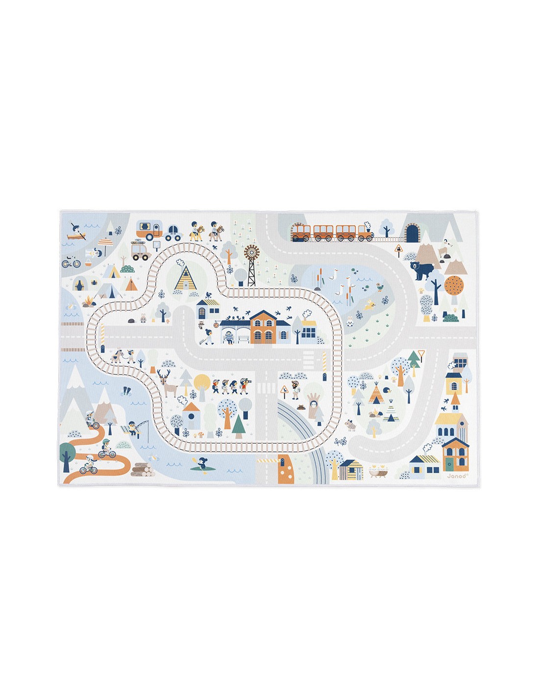Sur leur tapis de jeu avec circuit, les petits s’amusent sur les routes sinueuses de la montagne à la recherche d’éléments cachés, tel un cherche et trouve. On repère où se trouve le petit chat, l’ours hors de sa tanière, et on s’arrête au passage à niveaux lorsque le train approche … Il y a tant d’éléments naturels, d’animaux et de personnages représentés !