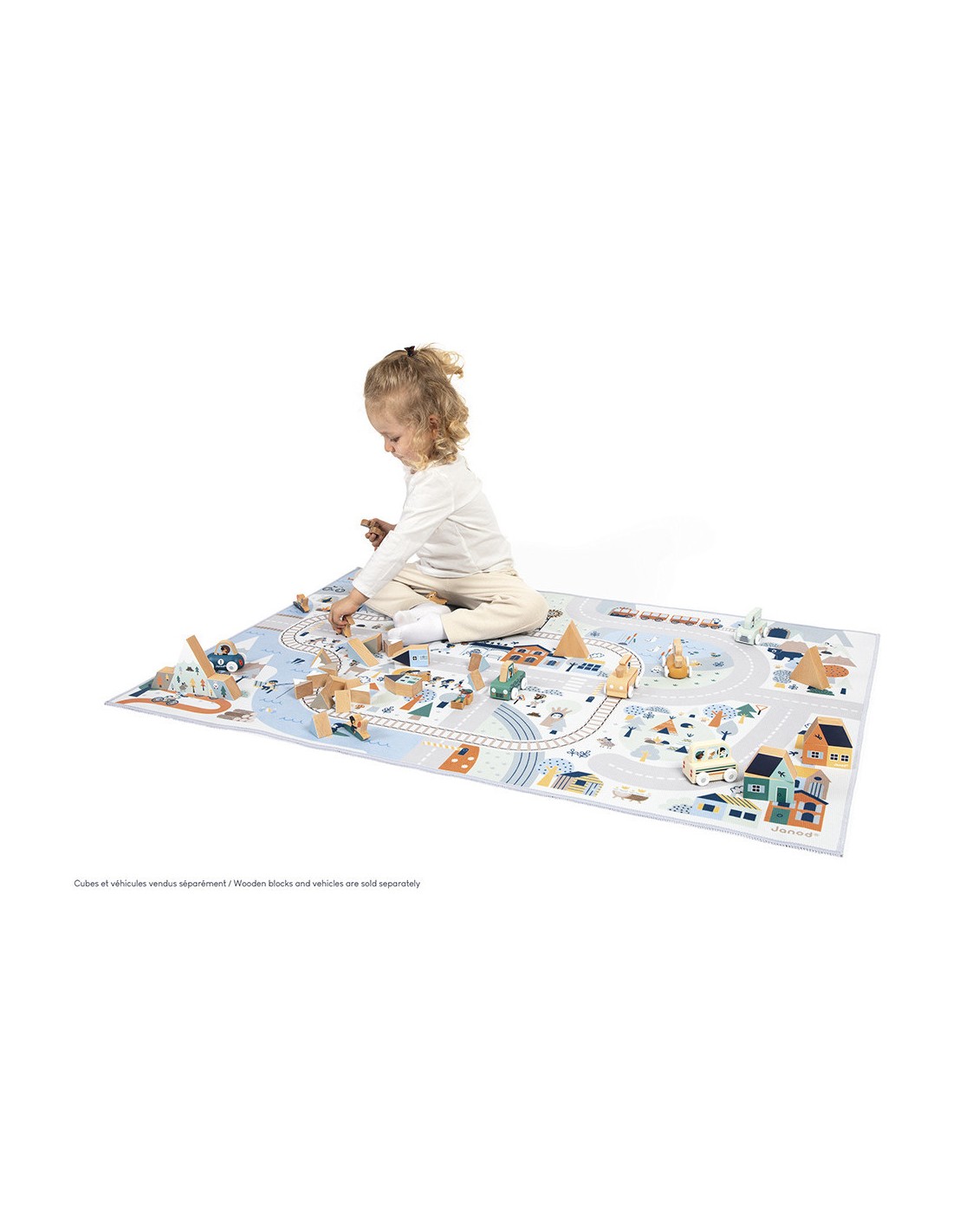 Les plus petits découvrent même les formes et les chiffres ! Autre atout de ce tapis de jeu pour enfant : il est antidérapant ! Parfait pour y faire rouler des petites voitures, ou tout simplement pour les petits qui ont la bougeotte. Dans son format 120 x 78 cm, ce tapis pour chambre d’enfant offre d’autres possibilités de jeu avec ses accessoires (vendus séparément) : il peut être complété d’une panoplie de véhicules et de cubes en bois, issus, eux aussi, de notre gamme Cross Roads.