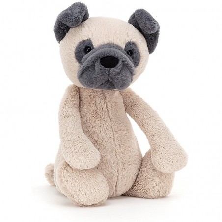 Découvrez le chien carlin pug Bashful de la célèbre marque Jellycat ! Cette peluche est véritablement le compagnon idéal pour votre enfant. Avec sa fourrure ultra douce et ses couleurs beige et gris, elle séduira petits et grands. Sa taille moyenne en fait un compagnon de jeu parfait, à la fois facile à manipuler et à câliner.