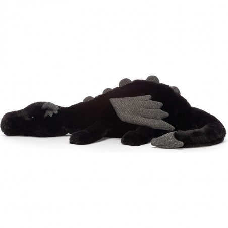 Faites de beaux rêves avec Onux Jellycat, un dragon noir de 26 cm de haut. Une jolie peluche avec une fourrure étincelante. Les dragons adorent les histoires, surtout lorsqu'ils dorment, alors partagez vos aventures préférées avec lui ! Il sera un excellent confident et un excellent consolateur.