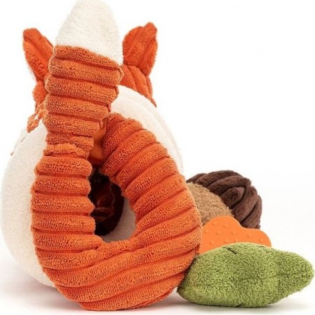 La Spirale d'Activités Peluche Renard Cordy Roy de Jellycat est un jouet d'éveil original et amusant. Avec son design élastique et ludique, ce renard coquin propose une feuille qui couine, un gland hochet, un anneau de dentition chompy et un collier vert jazzy. Les petites oreilles de pétales et le snoot calmar et snuffly font de ce jouet une compagnie parfaite pour bébé !