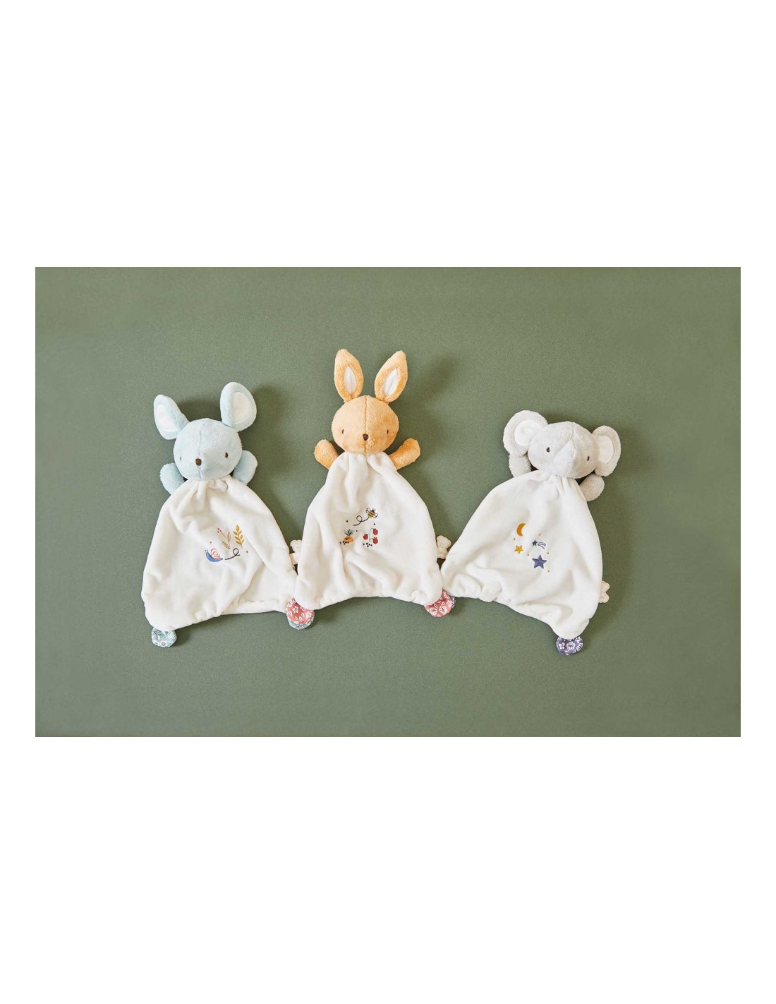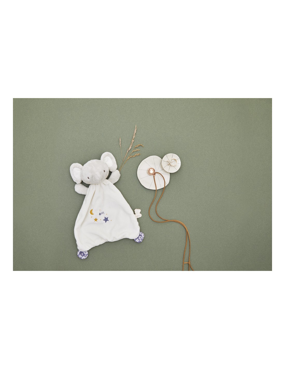 En plus d’être rassuré, bébé s’éveille aux sons dans un environnement stimulant et sécurisant. Le doudou éléphant mesure 24 cm, il est orné de broderies sur son ventre illustrant la comptine « Brille, brille petite étoile ». Les matériaux entrant dans la composition de ce doudou ont été choisis avec soin : 76% de matières recyclées, y compris le rembourrage.