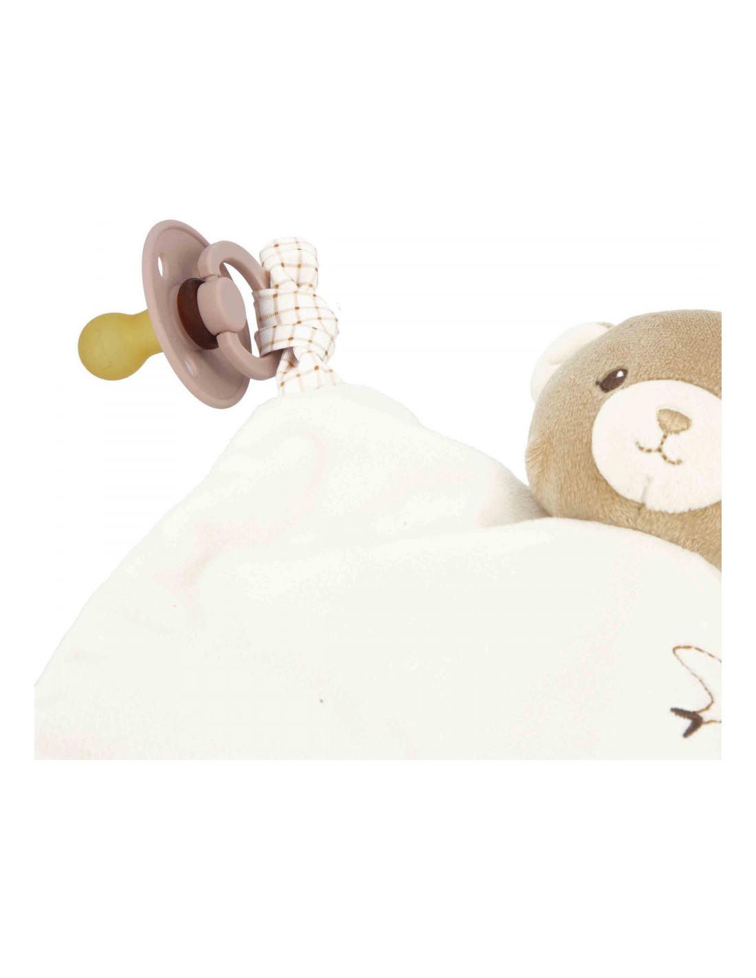 En plus d’être rassuré par cette bulle d'amour, bébé s’éveille aux sons. Avec sa texture douce et confortable, ce doudou plat de 24 cm deviendra le compagnon câlin préféré de bébé ! Dans un élégant coloris crème, il accompagne bébé grâce à ses 4 nœuds faciles à manipuler et utiles pour y accrocher la tétine.