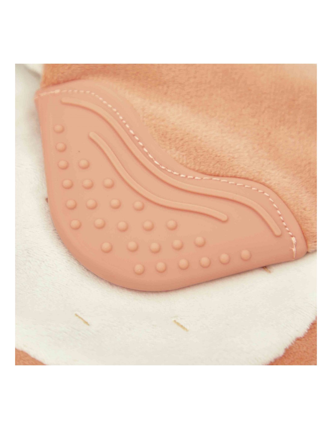 - Partie en silicone avec picots et rainures pour apaiser les poussées dentaires