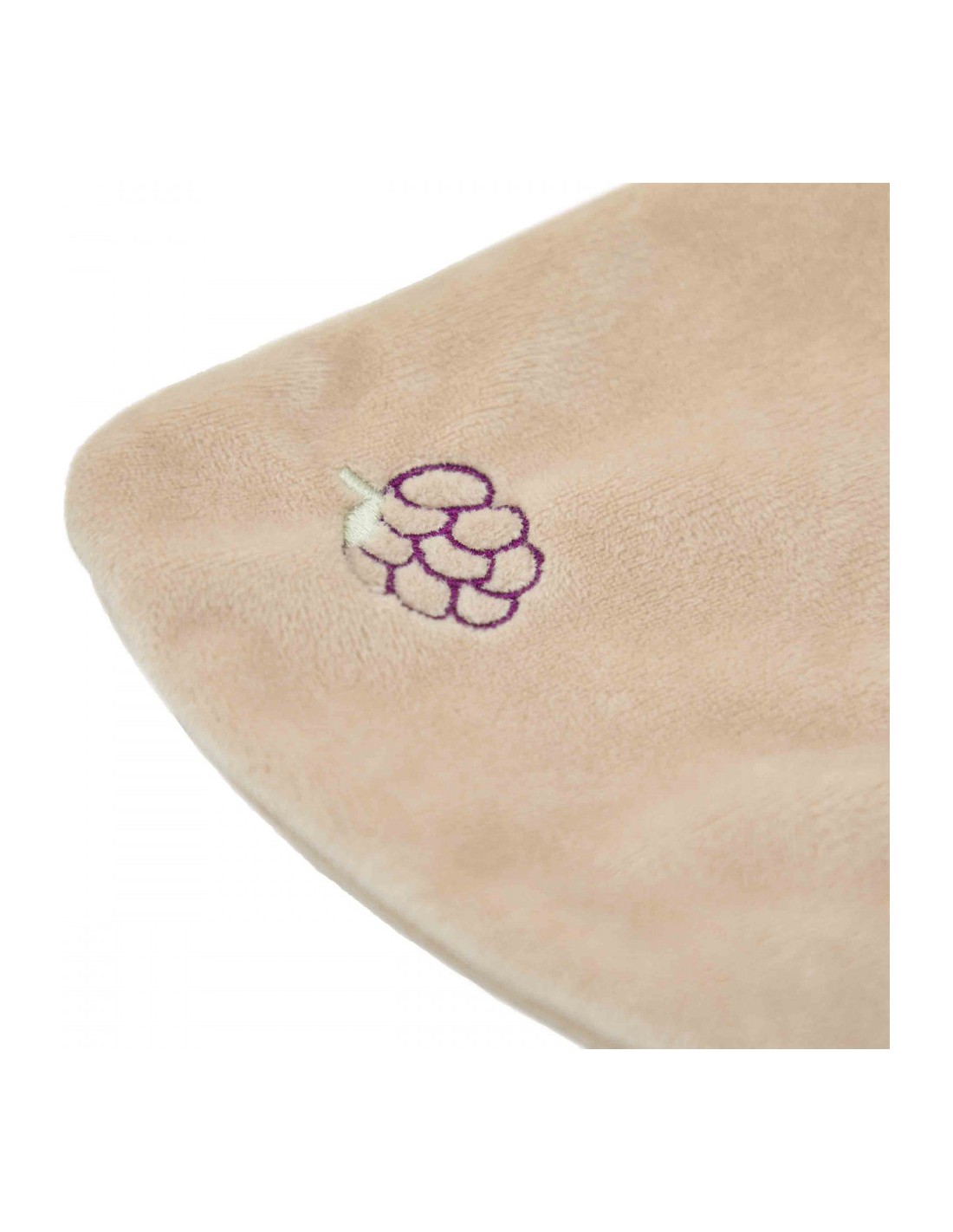 Son autre extrémité est habillée d'une délicate broderie représentant son fruit préféré, le raisin. Ce petit détail plein de tendresse, que bébé peut s'amuser à observer et à toucher, ajoute une touche d'originalité et de poésie au doudou. Confectionné avec soin, ce doudou en micro-velours et silicone est composé avec au moins 77% de matières recyclées, y compris son rembourrage en polyester recyclé.