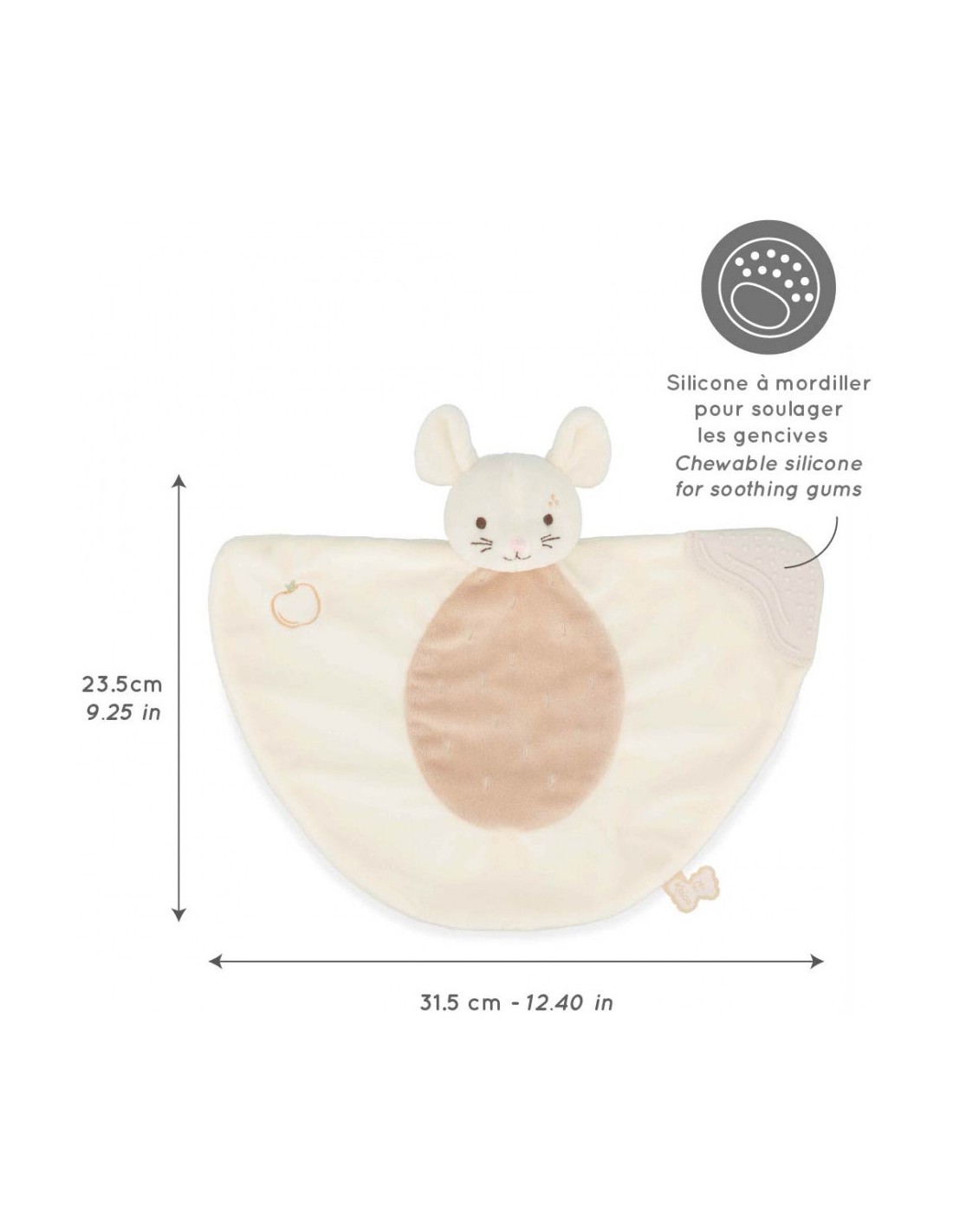 Ce doudou souris est le compagnon idéal pour les poussées dentaires de bébé ! Cadeau de naissance utile et original, ce doudou de dentition possède une extrémité ornée de rainures et de petits picots qui massent en douceur les gencives douloureuses de bébé. Apaisante, cette partie souple en silicone peut être mise à la bouche à l'infini !