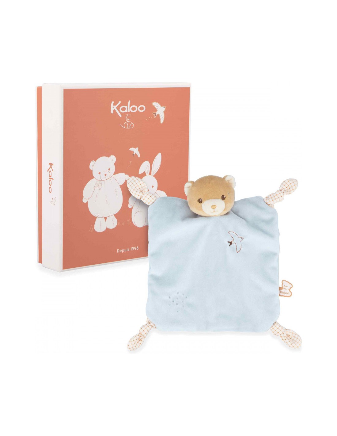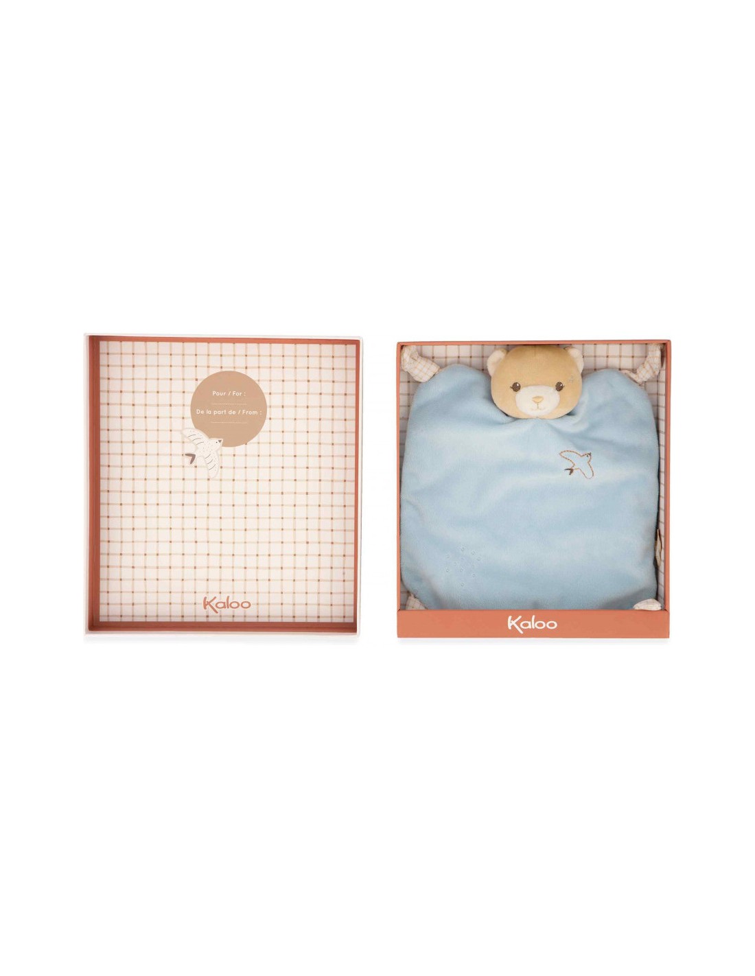 Un ours charmant comme doudou. Ce doudou ourson de 24 cm, intemporel et délicat, est adapté à bébé dès la naissance. Le corps doux et moelleux de ce doudou plat va ravir bébé, qui ne cessera de le câliner ! D'un beau coloris bleu, ce doudou carré comporte 4 nœuds à manipuler par l'enfant, qui sont aussi très utiles pour y accrocher la tétine et ainsi la garder à proximité.
