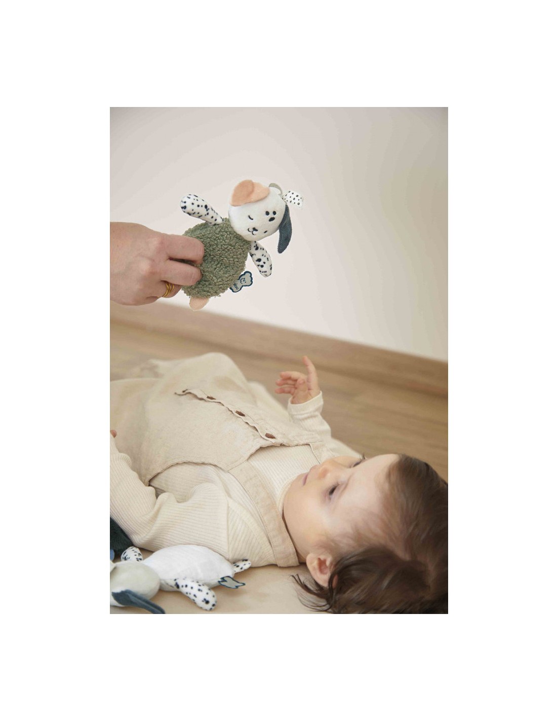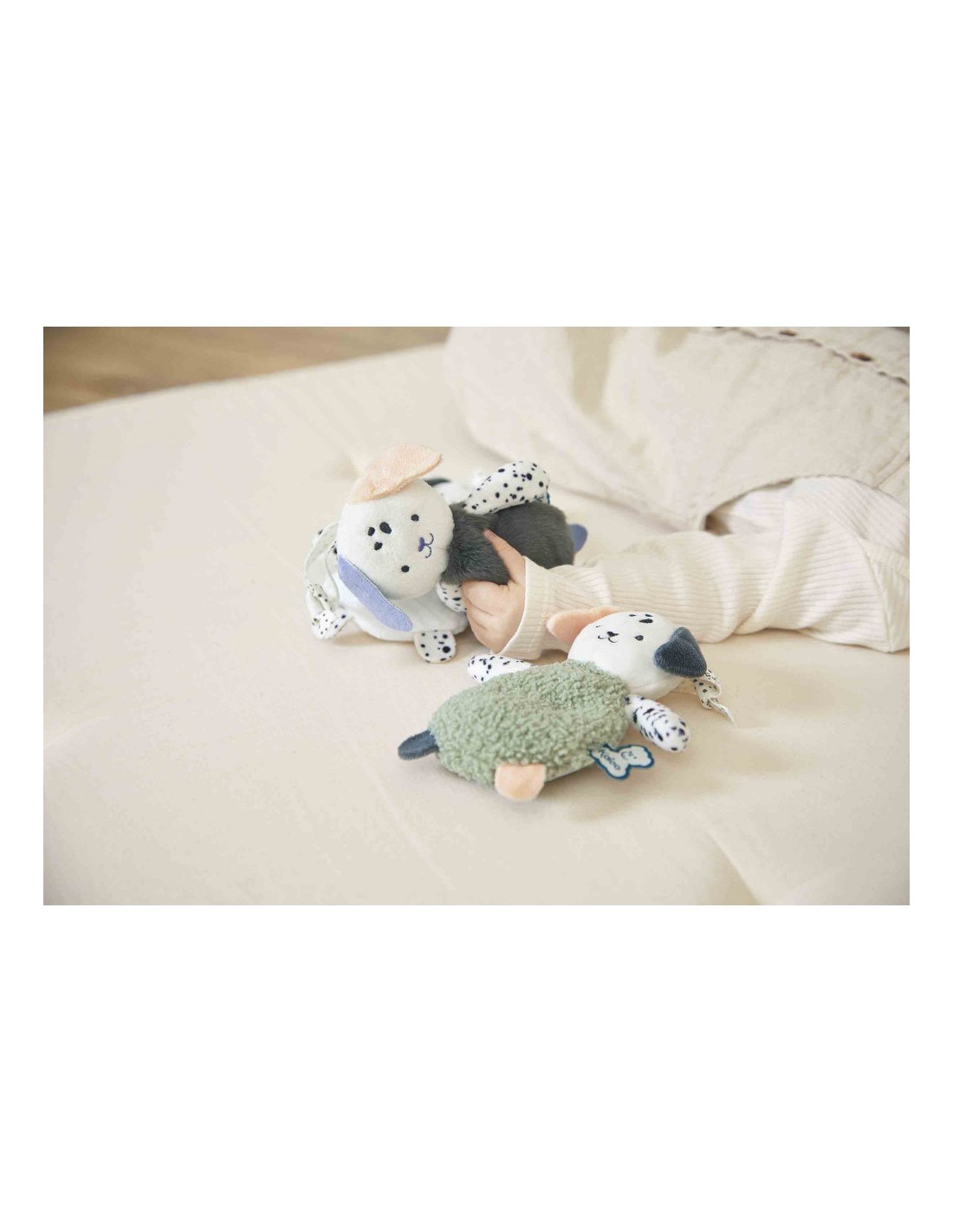 Trois petits chiots pour éveiller tous les sens de bébé ! Idéal dès la naissance, ce set de trois doudous chiots promet de longs moments de découvertes sensorielles à votre enfant. Avec leurs rubans pour les accrocher partout, ces petites peluches trouveront leur place sur l'arche d'éveil de bébé ou dans sa poussette, pour l'accompagner partout !