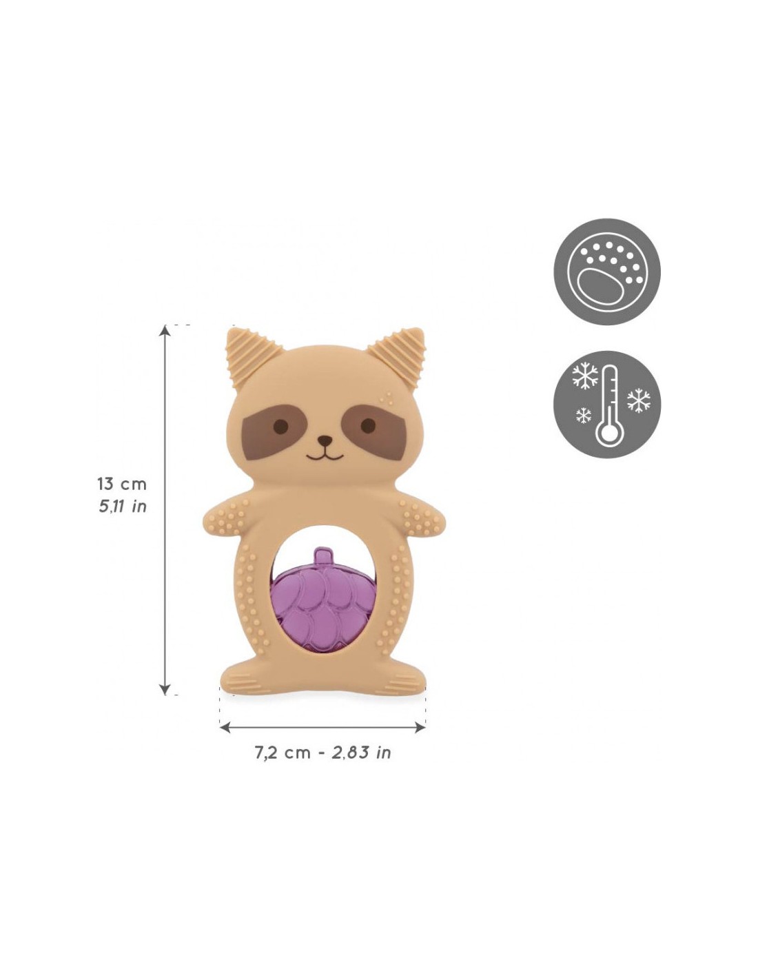 Un tendre petit raton laveur et son fruit à croquer : c'est le duo parfait pour calmer les petits inconforts des poussées dentaires de bébé ! Adapté aux bébés dès 3 mois, ce duo dentition et réfrigérant fait partie de la collection Grignoti : une gamme conçue pour soulager les maux liés aux poussées dentaires de bébé grâce à des compagnons grignoteurs qui invitent à mâchouiller et mordiller, tout en développant l'éveil gustatif.