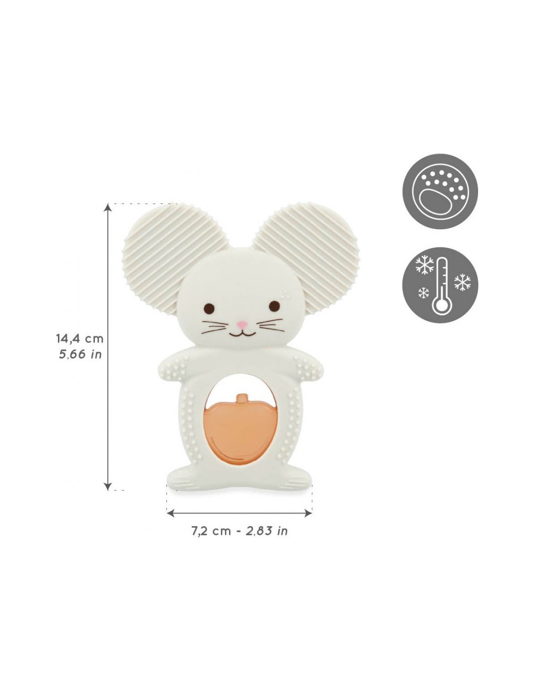 Une tendre petite souris et son fruit à croquer : c'est le duo parfait pour calmer les petits inconforts des poussées dentaires de bébé ! Adapté aux bébés dès 3 mois, ce duo dentition et réfrigérant fait partie de la collection Grignoti : une gamme conçue pour soulager les maux liés aux poussées dentaires grâce à des compagnons grignoteurs qui invitent à mâchouiller et mordiller, tout en développant l'éveil gustatif.