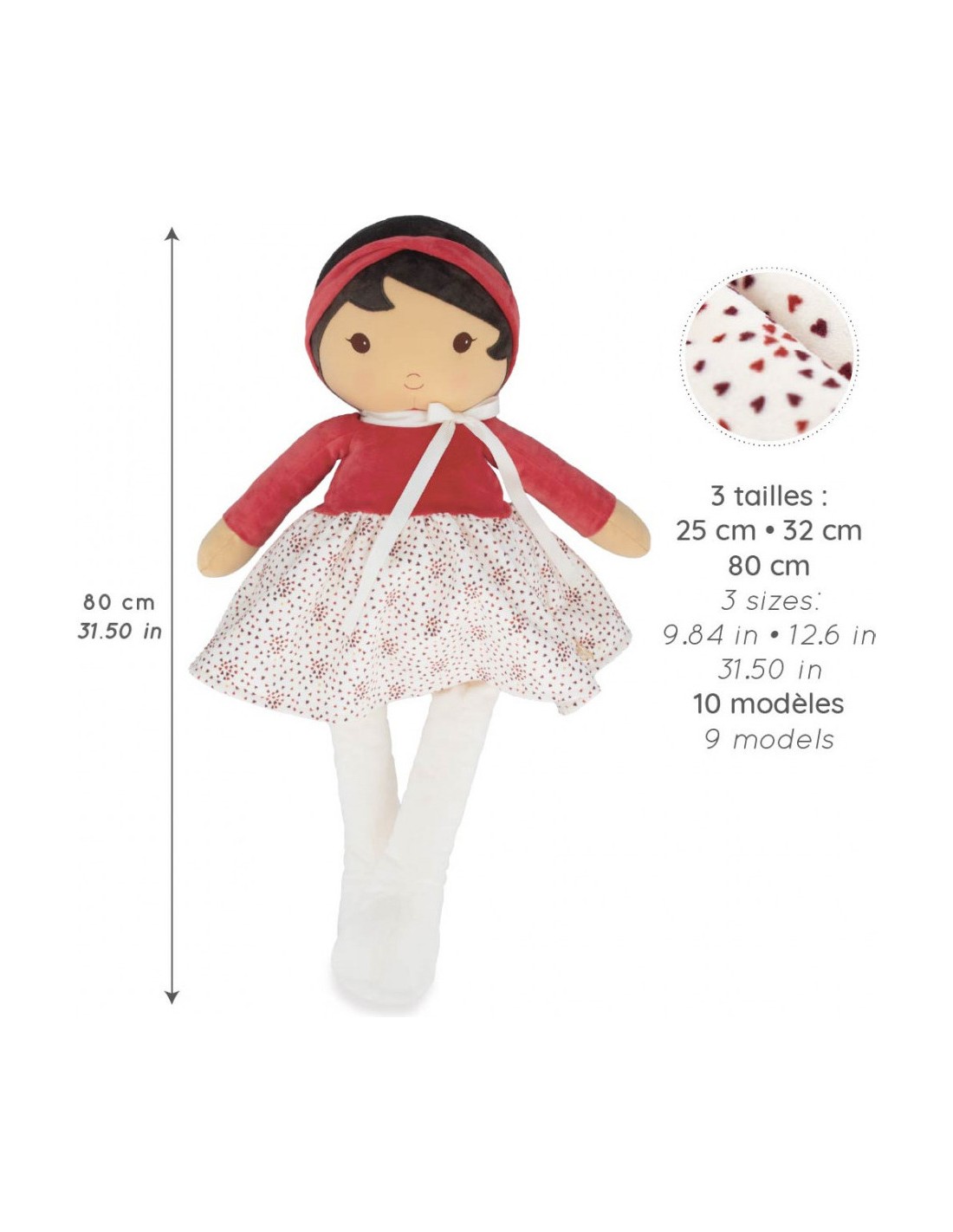 Une grande poupée pour de grands moments de tendresse ! Avec son format 80 cm, elle offre à bébé une présence rassurante et toujours prête pour les câlins, dès la naissance. Avec sa jupe à volants ornée de cœurs et son cache-cœur rouge assorti à son bandeau, Émilie incarne la joie de vivre et l’amour des petits bonheurs du quotidien.