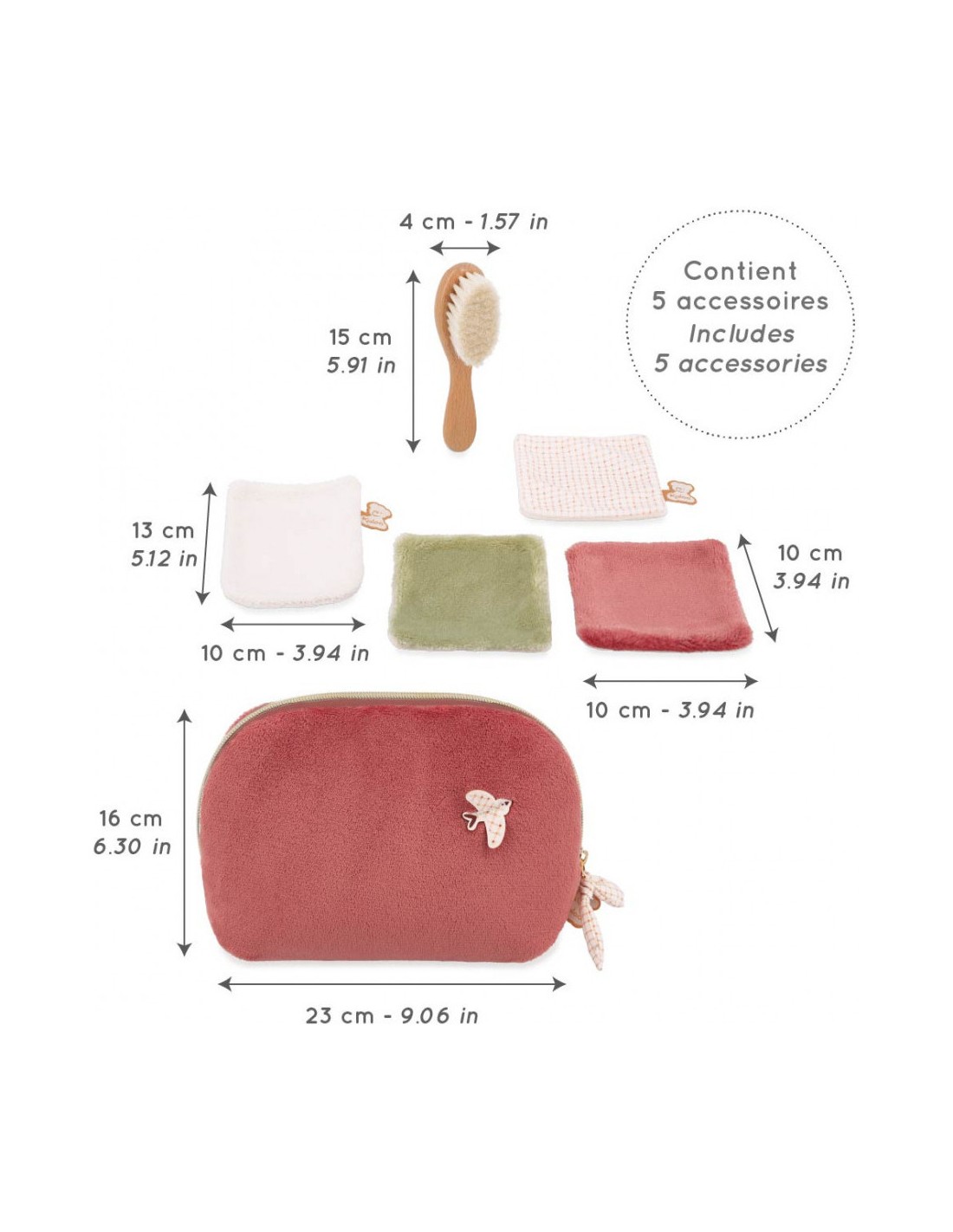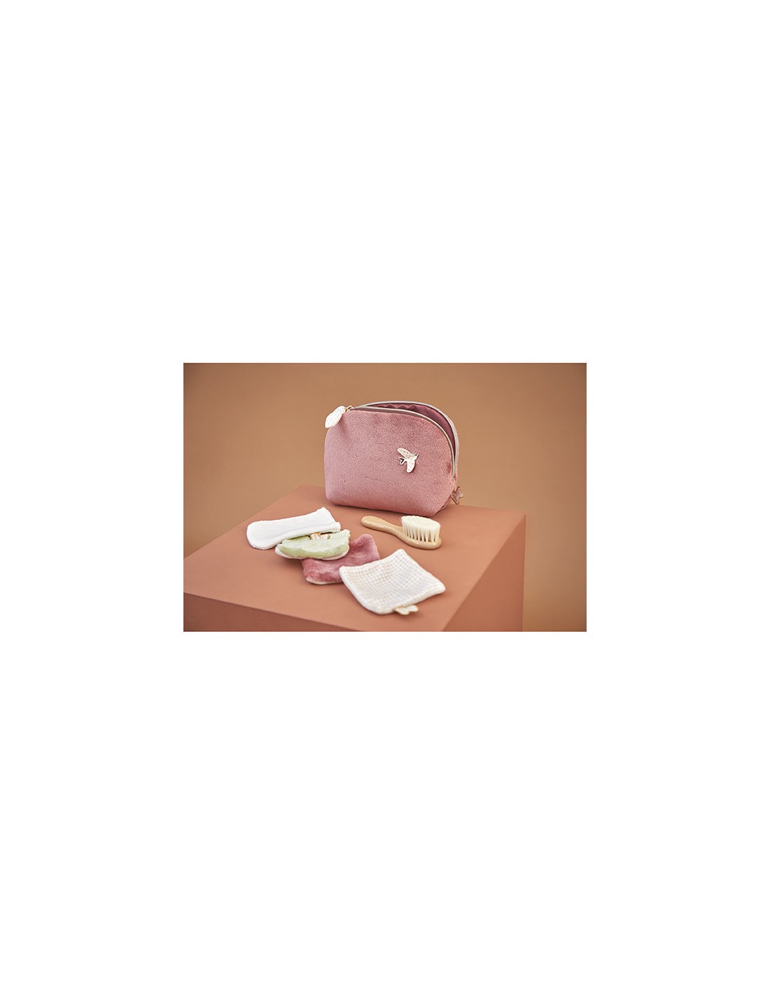 Offrez cette jolie trousse et ses accessoires de toilette comme cadeau de naissance ! Issu de la collection Intemporel, ce kit de toilette adopte un style élégant grâce à ses finitions soignées et ses couleurs délicates. Dans son format 23 x 16 cm, la trousse bordeaux est idéale pour emporter avec soi tout le nécessaire pour la toilette de bébé.