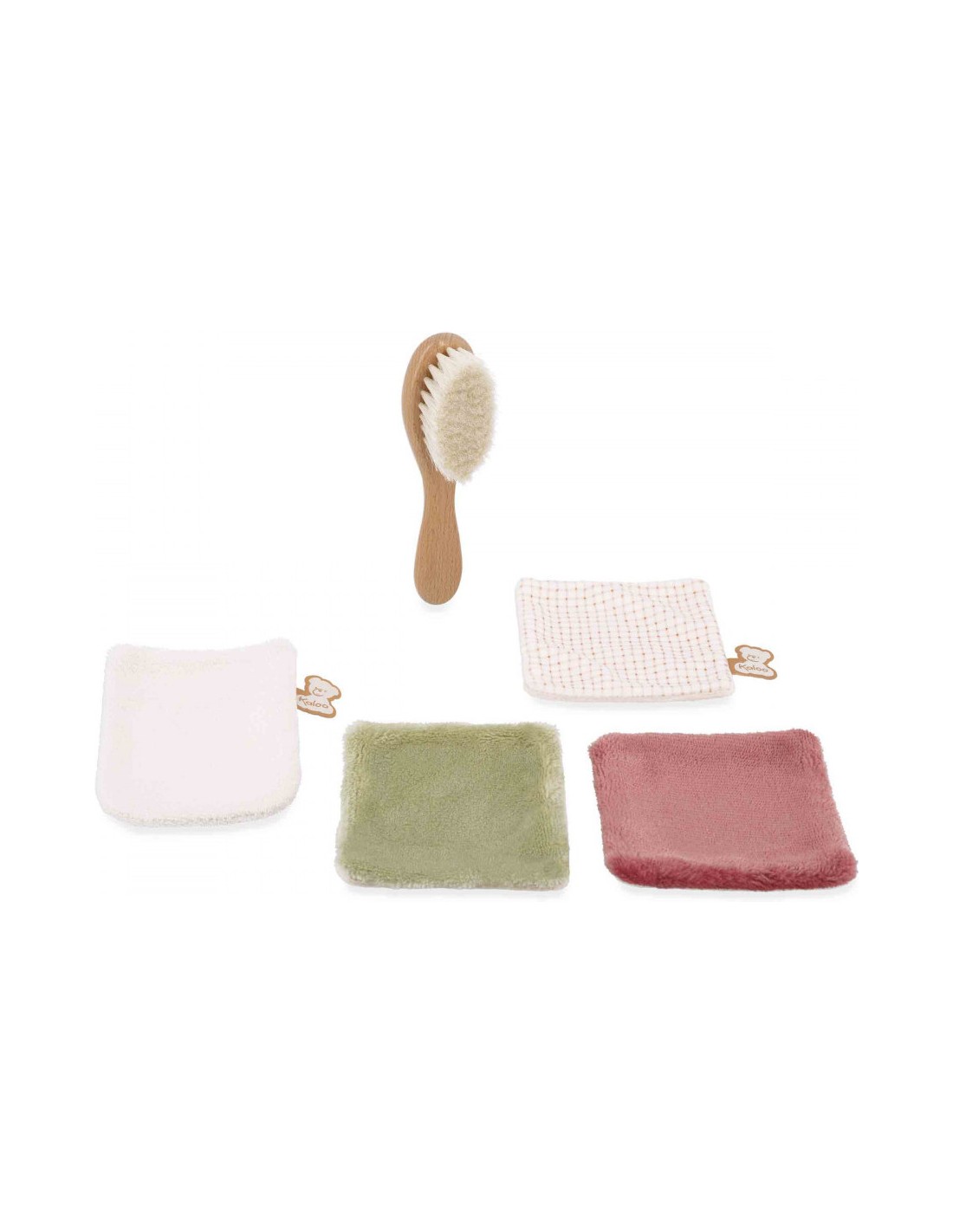 - Comprend 1 brosse en bois, 3 carrés réutilisables et 1 gant de toilette