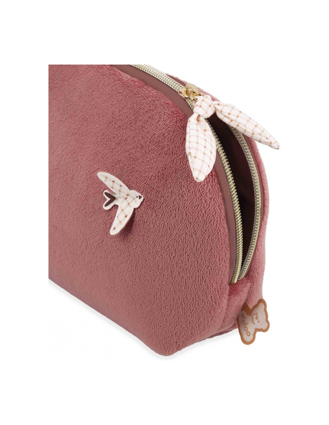 En fourrure toute douce, elle évoque la tendresse de l’univers de bébé tout en apportant une note d’élégance. Les petits nœuds en tissu vichy viennent souligner le charme de cette trousse. Composée de fourrure et de popeline recyclées, elle se lave en machine à 30°C en cycle délicat. À l’intérieur, vous trouverez une brosse en bois ornée d’une hirondelle, conçue avec des poils de chèvre pour coiffer en douceur le cuir chevelu de bébé et lui offrir un moment apaisant.