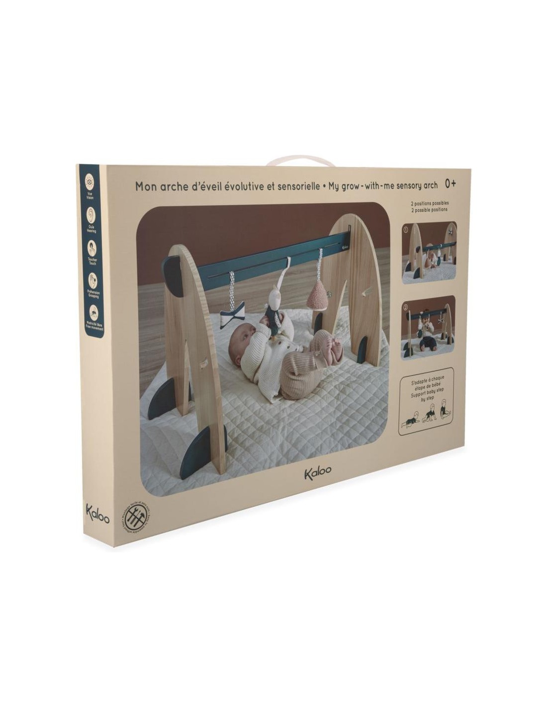 Cette arche d'éveil évolutive et sensorielle fait partie de la gamme Stimuli de Kaloo, développée en collaboration avec des psychomotriciens pour aider bébé à développer ses compétences sensorielles et motrices dès la naissance.