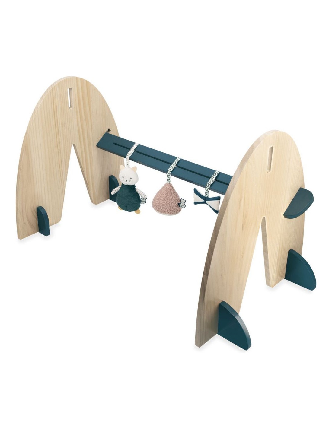 Avec une hauteur de 45 cm et une longueur de 77,5 cm, ce portique d'activité en bois est idéal pour accompagner bébé lorsqu'il est allongé sur le dos ou assis. Fabriquée en bois de pin Fsc (portique) et en Mdf Fsc (pieds), cette arche allie esthétique et durabilité.