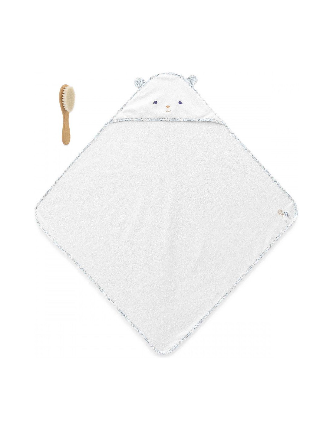 Découvrez ce coffret de bain bien-être pour prendre soin de bébé ! Il se compose d'une jolie cape de bain de 75 cm et d'une brosse à cheveux adaptée aux tout-petits. Parfaite pour garder bébé bien au chaud après le bain, la cape possède une adorable tête d'ours, qui va vous faire craquer à coup sûr !