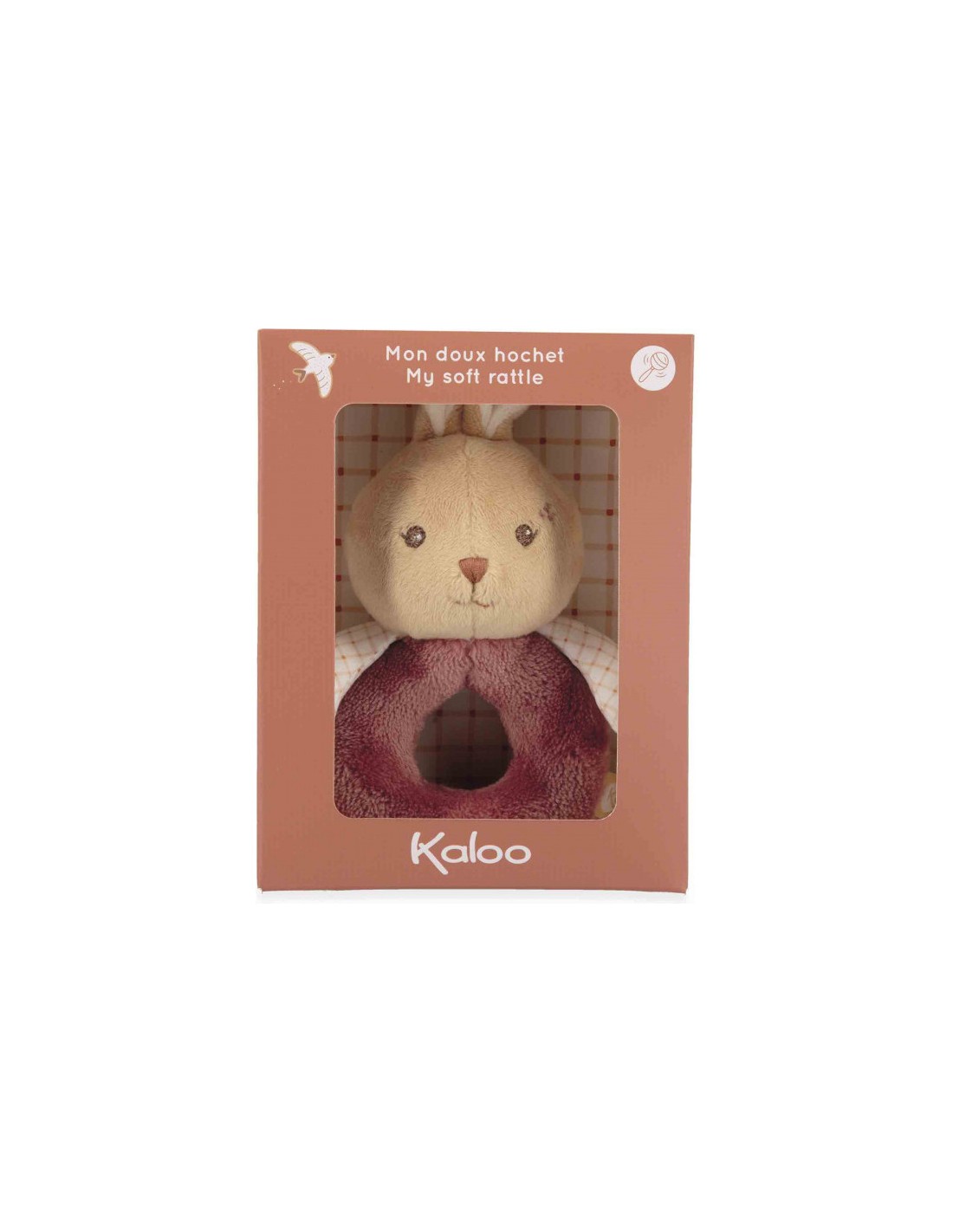 Sa belle fourrure bordeaux est très douce au toucher, ce qui procure une sensation agréable pour les petites mains de bébé. Cette texture stimulante invite aussi à de tendres câlins. Avec ses bras en popeline et en imprimé vichy, ce doudou lapin arbore un look tendre et intemporel, propre à l’univers Kaloo.