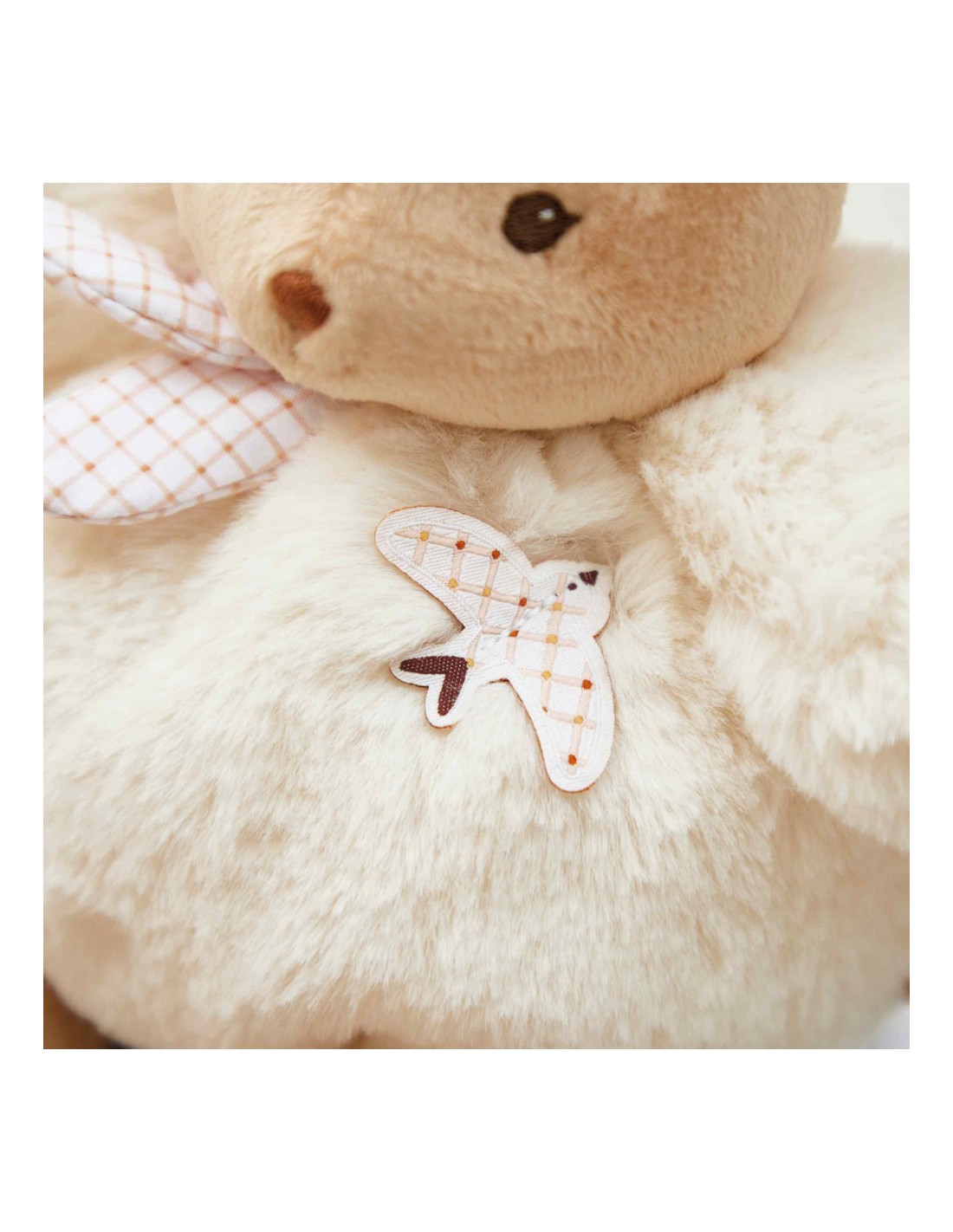 En plus de sa jolie bouille, cette peluche lapin a un ventre incroyablement doux et moelleux, parfait pour les câlins. De couleur crème, ce Patapouf est orné de détails lui donnant un style résolument intemporel : une hirondelle, synonyme de renouveau et de fraicheur, un joli imprimé vichy sur son cœur et des rubans assortis autour de son cou.