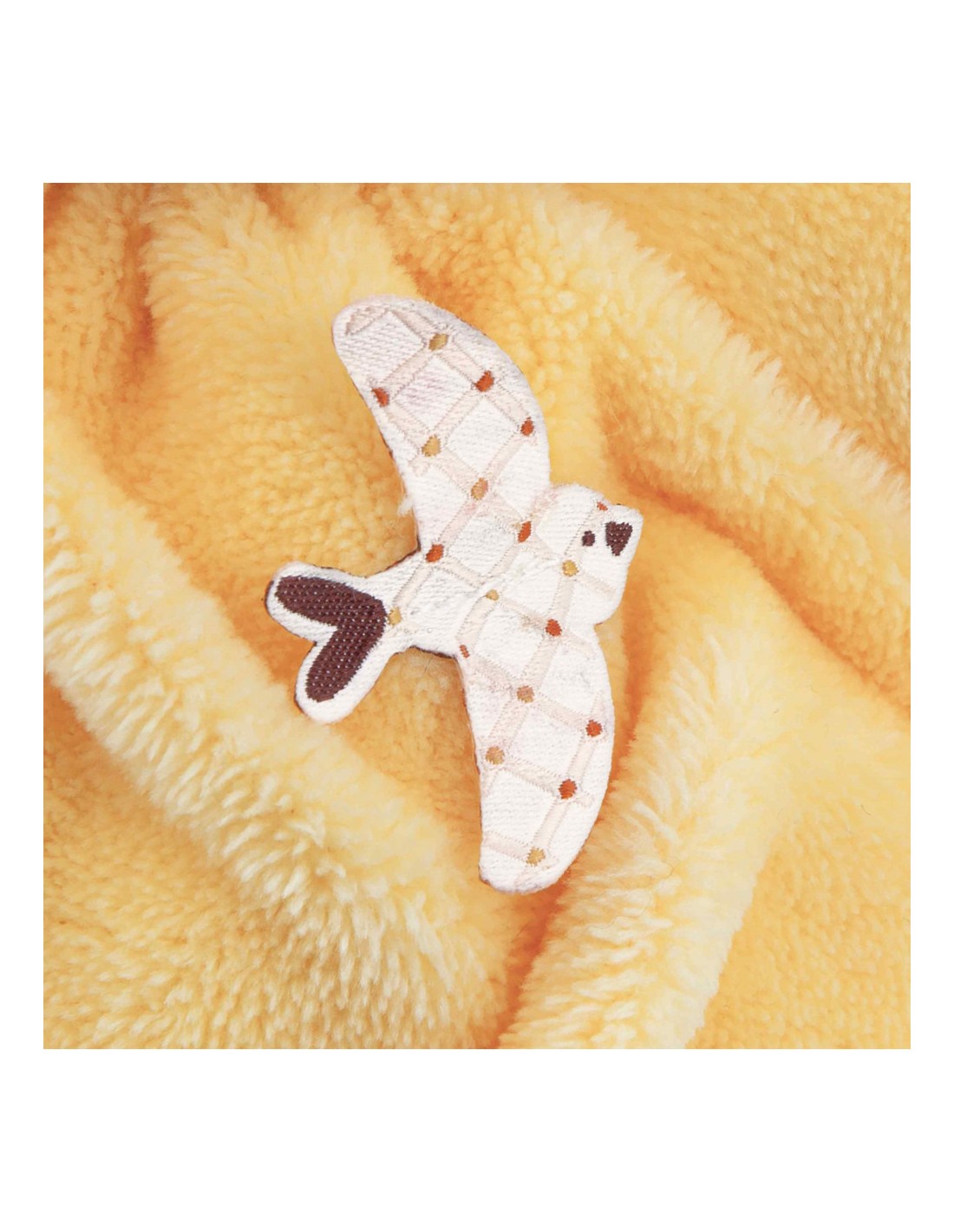 En plus de sa frimousse sympathique, cette peluche lapin a un ventre incroyablement doux et moelleux avec de nombreux plis à saisir, parfaits pour les petites mains curieuses. De couleur jaune, ce Patapouf est orné de détails lui donnant un style résolument intemporel : une hirondelle, synonyme de renouveau et de fraicheur, un bel imprimé vichy sur son cœur et des rubans assortis autour de son cou.