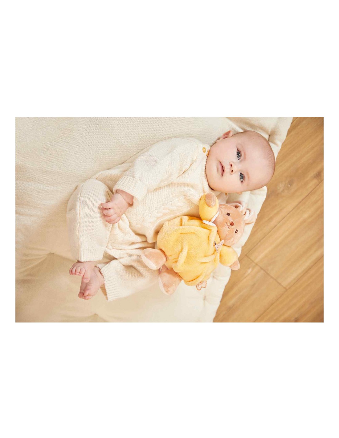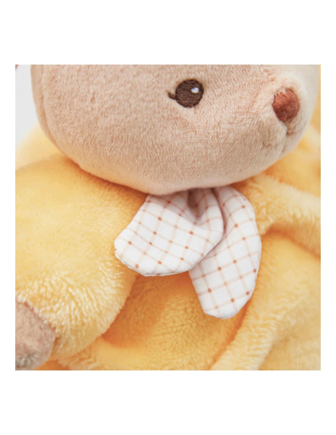 Le parent sera rassuré de savoir son enfant si bien accompagné. Confectionné avec soin, il est composé à 95% de matières recyclées (fourrure de flanelle, micro-velours, popeline), y compris son rembourrage en polyester recyclé. Vous pouvez laver cette peluche lapin Patapouf jaune en machine à 30°.