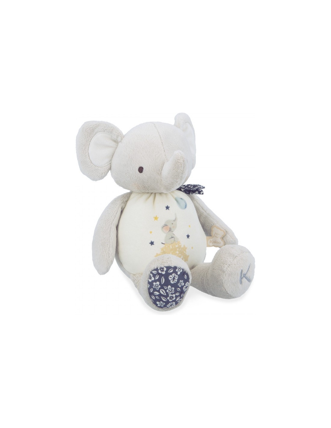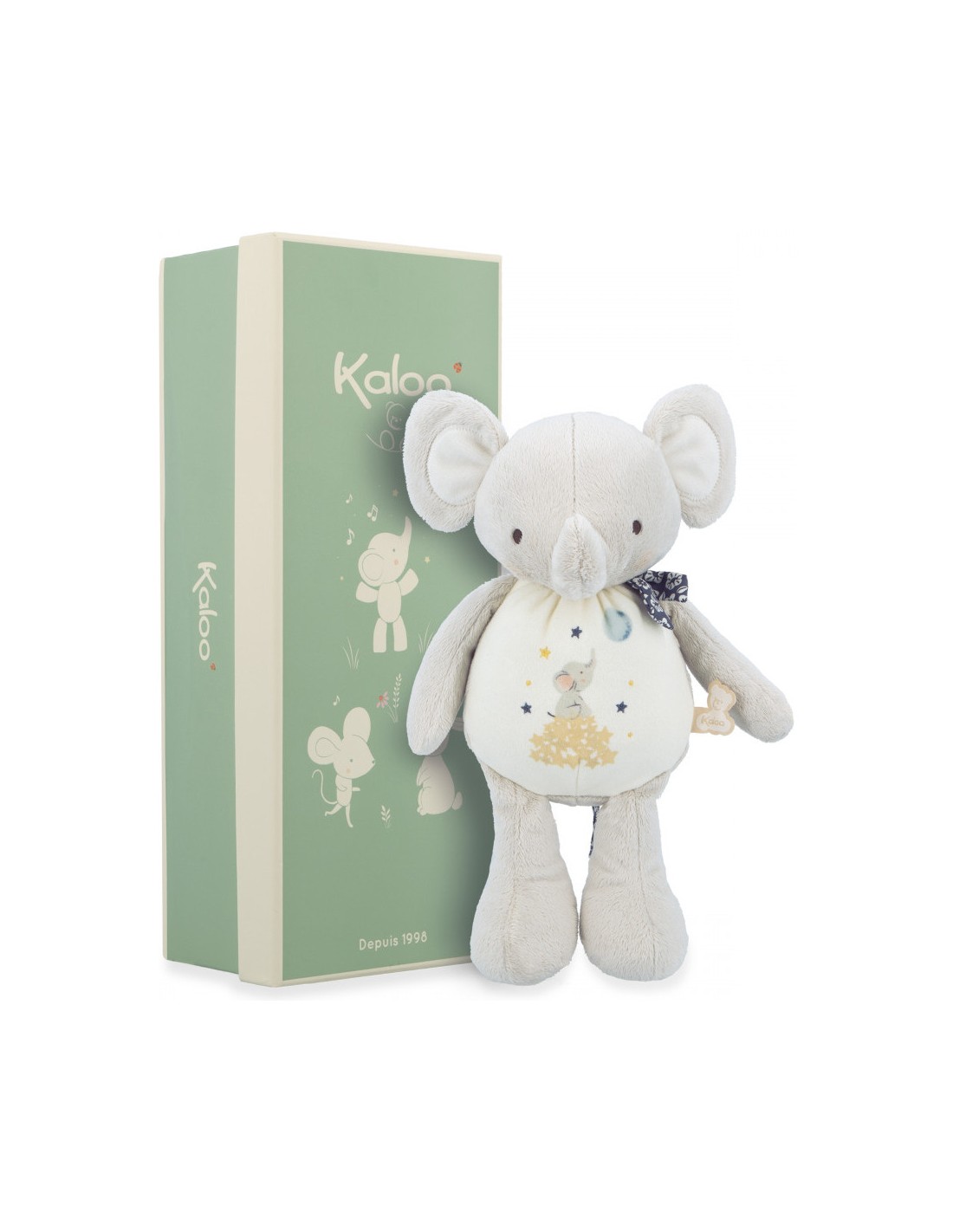 Conçue avec soin, cette peluche sonore est composée de micro-velours, de popeline et de fourrure synthétique, le tout à base de polyester recyclé, y compris le rembourrage : soit 86% de matériaux recyclés, pour une composition sans compromis ! Vous recevrez cet adorable éléphant en peluche présenté dans sa belle boîte cadeau avec couvercle, parfait pour l’offrir dans les meilleures conditions pour une naissance.