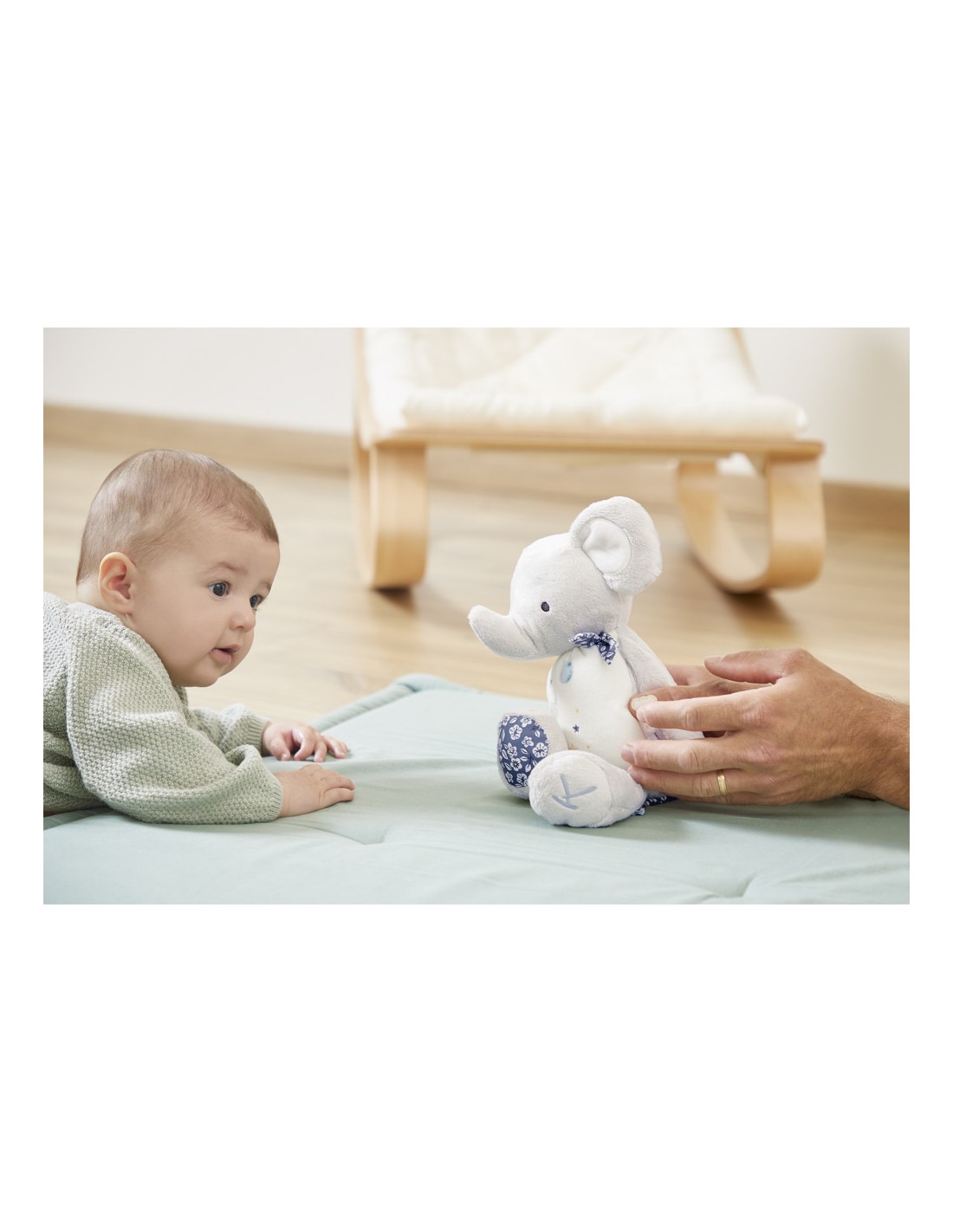 Vous allez adorer le joli ruban autour du cou de ce charmant éléphant : il invite bébé à se saisir de sa peluche pour explorer tout ce qu’elle a à offrir. Avec ses grandes oreilles, sa douceur et sa fonction sonore, cette peluche éléphant de 28 cm est facile à saisir et à manipuler par les petits.