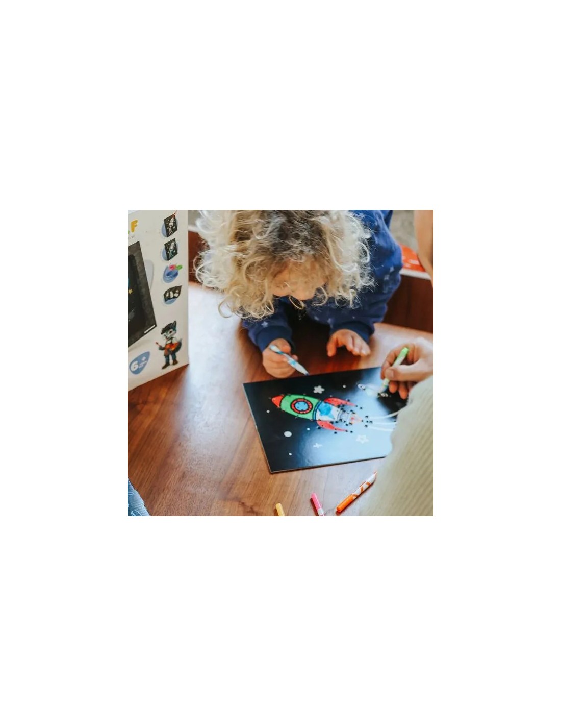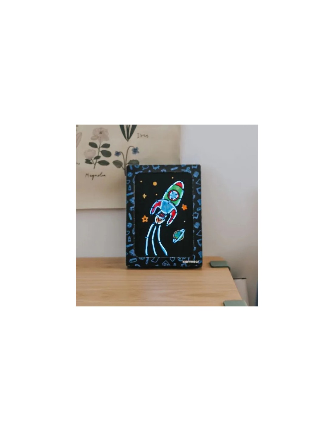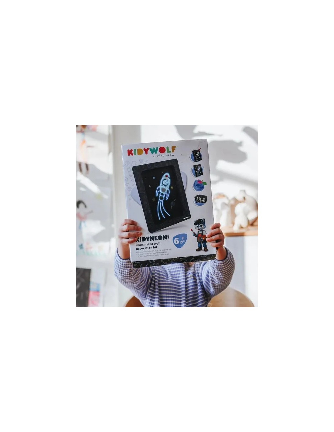 Kidyneon réinvente les loisirs créatifs en ajoutant une touche de magie lumineuse ! Grâce à un fil effet néon à insérer dans une planche pré-perforée, les enfants réalisent des tableaux brillants, originaux et fièrement exposables. Une activité manuelle qui stimule la créativité tout en développant la motricité fine et la concentration.