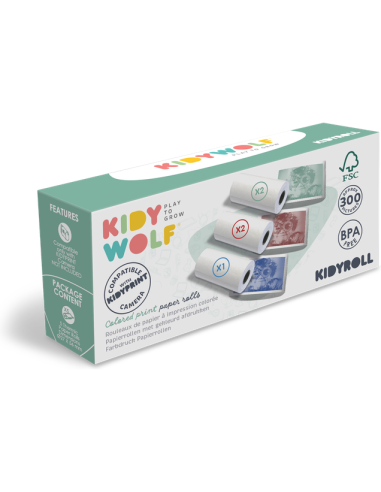5 Rouleaux de papier coloré pour les appareils photos à impression thermique Vert et Rose Kidyprint.