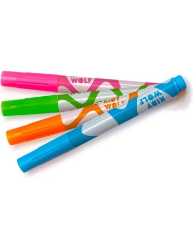 Kit de marqueurs effaçables aux couleurs fluorescentes pour dessiner sur le tableau noir de la Kidydraw-Pro. Ils mettant en avant un effet néon qui sublimeront les couleurs des dessins de vos enfants pendant la nuit.
