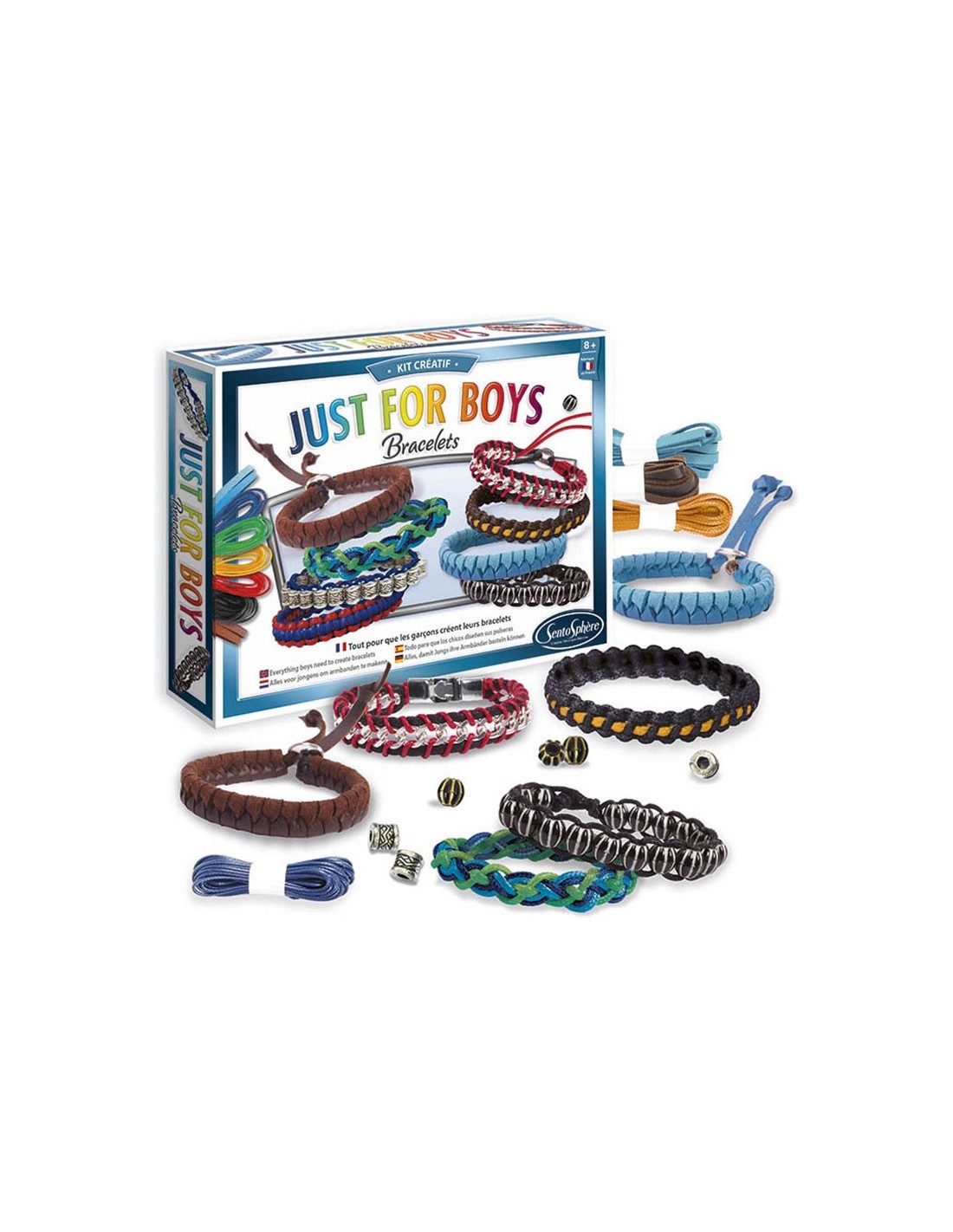 Parce que les garçons aussi aiment porter des bracelets et montrer leur habileté manuelle, ce coffret a été mis au point exclusivement pour eux.