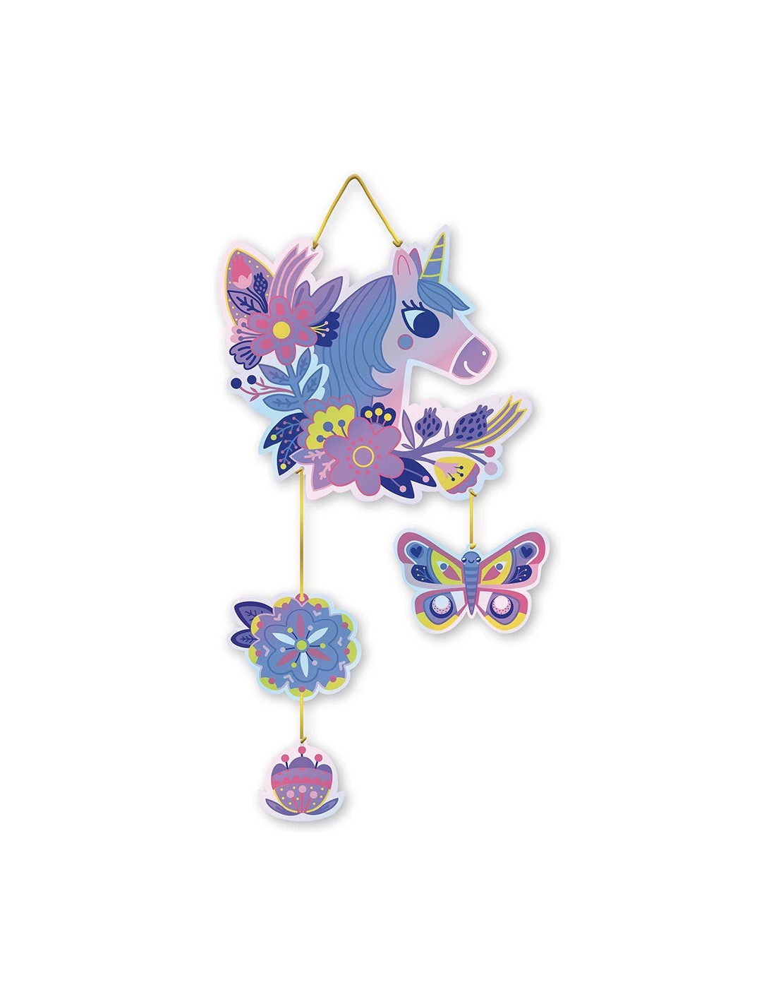 Avec ce kit créatif votre enfant réalise de belles décorations sur le thème des licornes pour ensuite les accrocher dans sa chambre. Grâce à la technique du Scratch Art, l'activité est accessible et amusante à réaliser pour les enfants dès 6 ans. Pour cela, rien de plus simple : il suffit de se munir du stylet en bois et de gratter les illustrations pré-tracées pour voir les licornes et les arcs-ciel se parer de couleurs éclatantes !