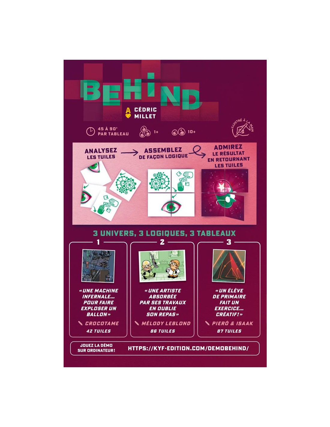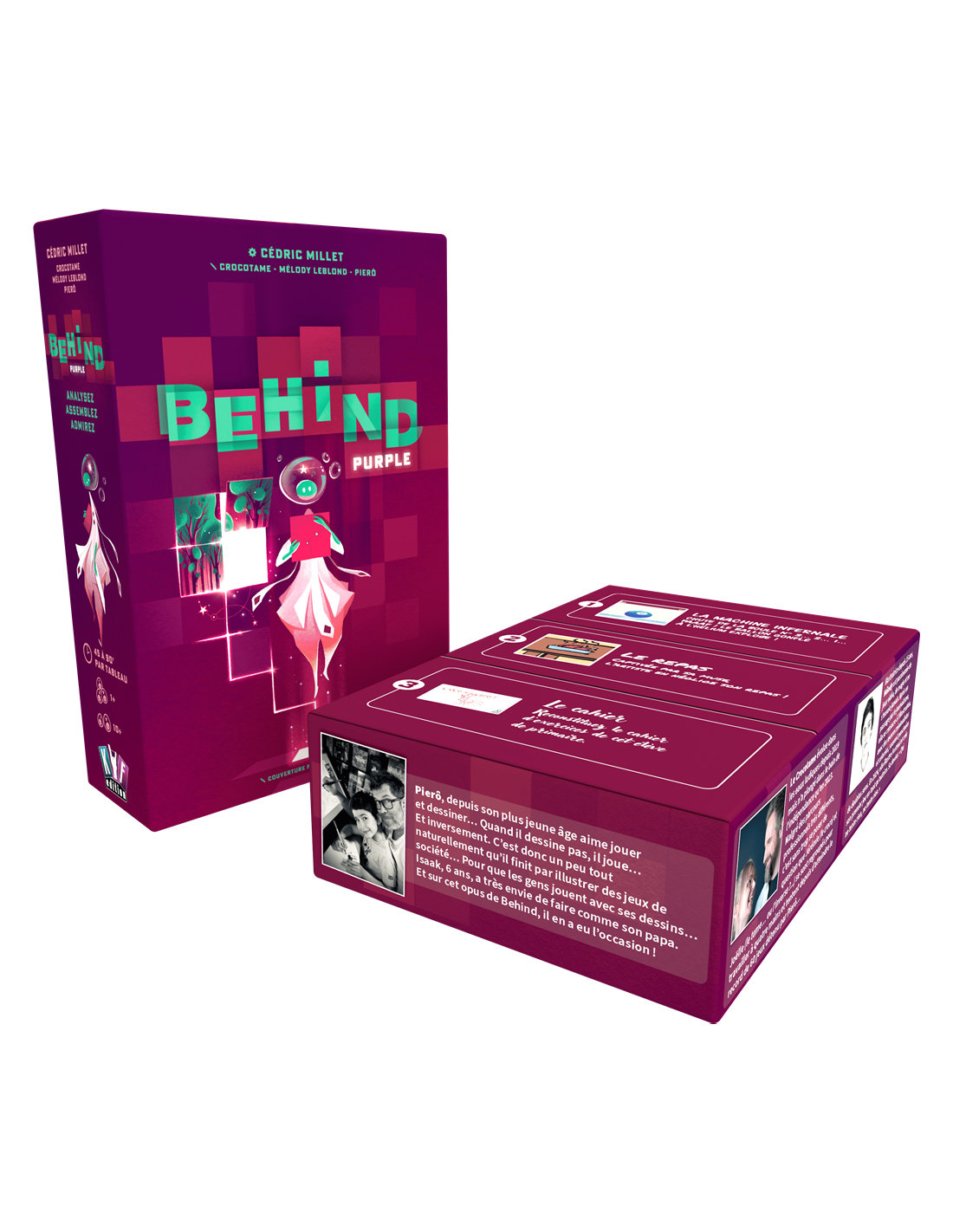 Découvrez Behind : Purple, la seconde boîte de Behind, le jeu coopératif de déduction dont l'originalité et l'ingéniosité ont été récompensées d'un As d'or Initié en 2025. Embarquez pour 3 nouvelles enquêtes, avec chacune leur logique et leur univers : "la Machine Infernale" de Crocotame, "Le Repas " de Melody Leblond et enfin "Le Cahier" de Pierô et Isaak.