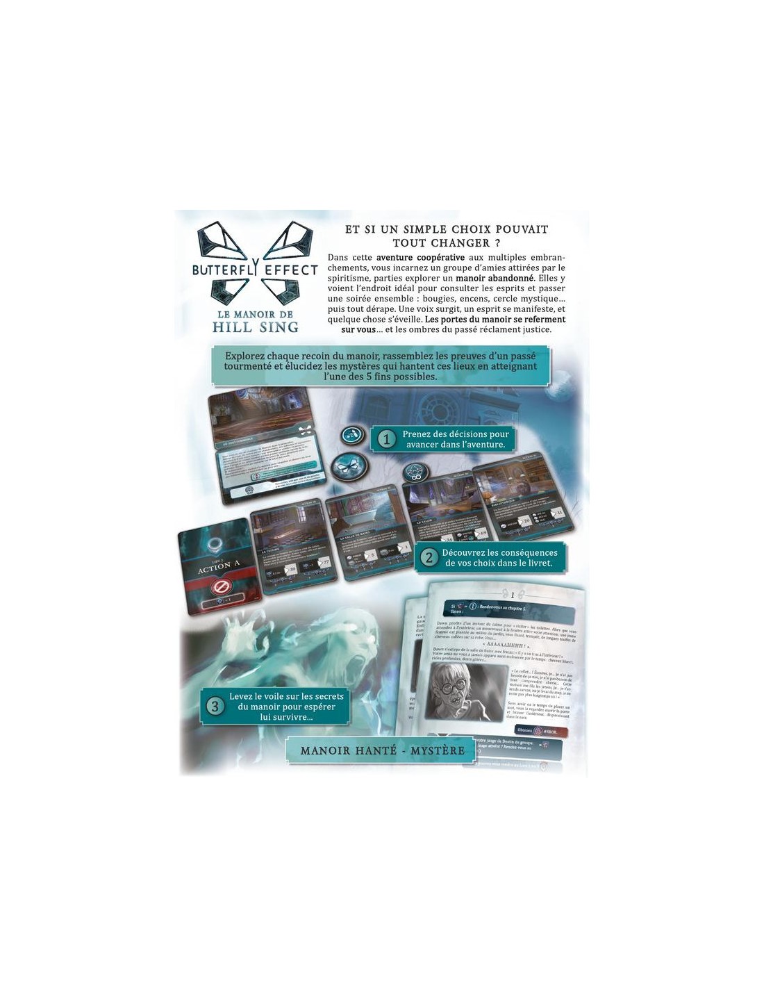 Découvrez la deuxième aventure de la gamme Butterfly Effect avec ce nouveau volet intitulé Le Manoir de Hill Sing ! Butterfly Effect est un jeu narratif et coopératif dont la mécanique principale repose sur le choix. Tout au long de votre aventure, vous traverserez différentes Ères (temporelles ou géographiques).