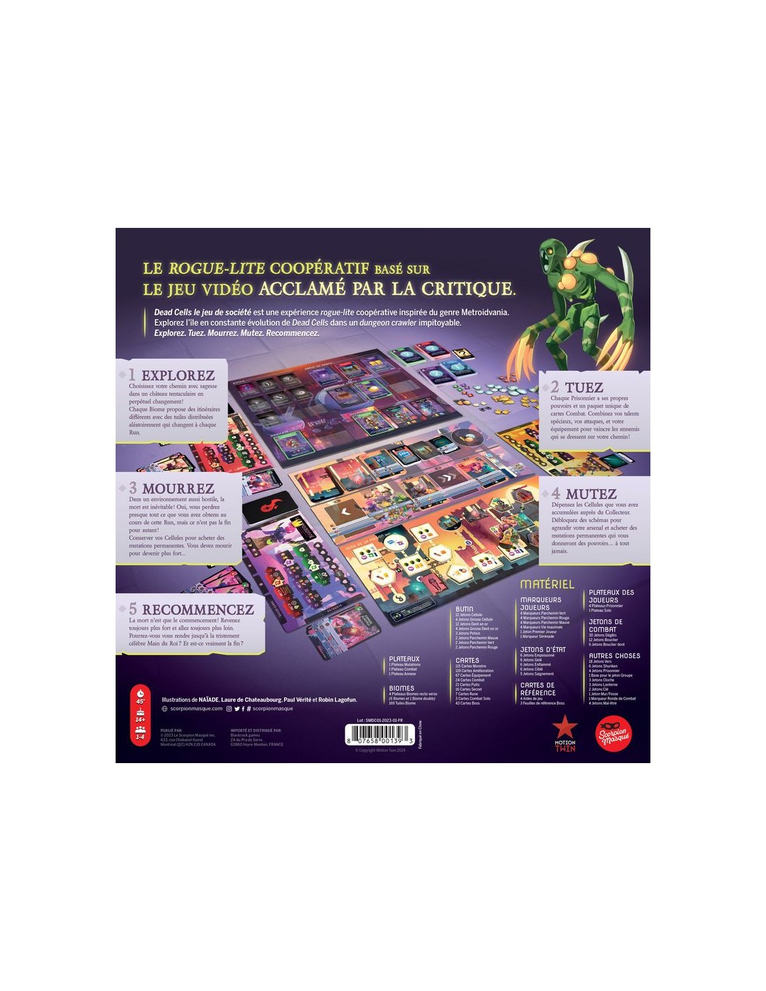 Avec le jeu de société Dead Cells, vivez une expérience de jeu coopérative rogue-lite inspirée du genre Metroidvania. Explorez l’île en constante évolution de Dead Cells dans un dungeon-crawler impitoyable. Explorez. Tuez. Mourrez. Mutez. Recommencez.
