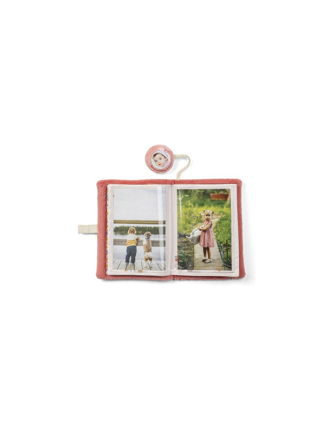 Son premier album photo, pour ses premiers souvenirs ! Cet album photo en tissu tout doux permet à votre enfant de garder les photos de ses proches toujours près de lui. Il a été pensé pour une manipulation dès l'âge de 9 mois. L'album photo Jeanne le chat dispose de 10 pochettes pour glisser vos plus beaux clichés, bien protégés. Chaque page à l'intérieur de l'album est décorée de jolies illustrations, inspirées de l'univers de notre petit chat du jardin et de ses copains. Une fois vos photos ajoutées, elles seront bien mises en valeur par les différents motifs et coloris des décors. Le plus de cet album photo pour bébé ? Son marque-page spécial décoré d’une souris : au dos de celui-ci, glissez la photo de votre enfant pour personnaliser son album. Sa forme ronde est idéale à manipuler par les petits, qui pourront le câliner ou l’utiliser pour marquer les pages comme les grands. Dans son format portrait vertical, l'album photo Lilliputiens peut être emporté partout pour feuilleter ses plus beaux clichés avec joie et nostalgie. Proposer son propre petit album photo en tissu à votre enfant lui permet d'emporter partout avec lui l'image de ses proches. Il peut alors s’amuser à reconnaitre des visages familiers ou se rappeler des souvenirs précieux. Comme un livre d’éveil, c’est un support visuel idéal pour divertir votre bout de chou pendant un long trajet ou une attente qui se prolonge. Même à la crèche, ou lorsque mamie nous manque beaucoup, on aime retrouver sa photo dans son propre album et rendre la séparation plus douce. Quand votre enfant grandit, il pourra utiliser son album photo rose pour ranger les photos qu'il aura prises lui-même ! Album photo personnalisable et lavable en surface uniquement. Format 14 x 18 cm. Alors, faites votre plus beau sourire !