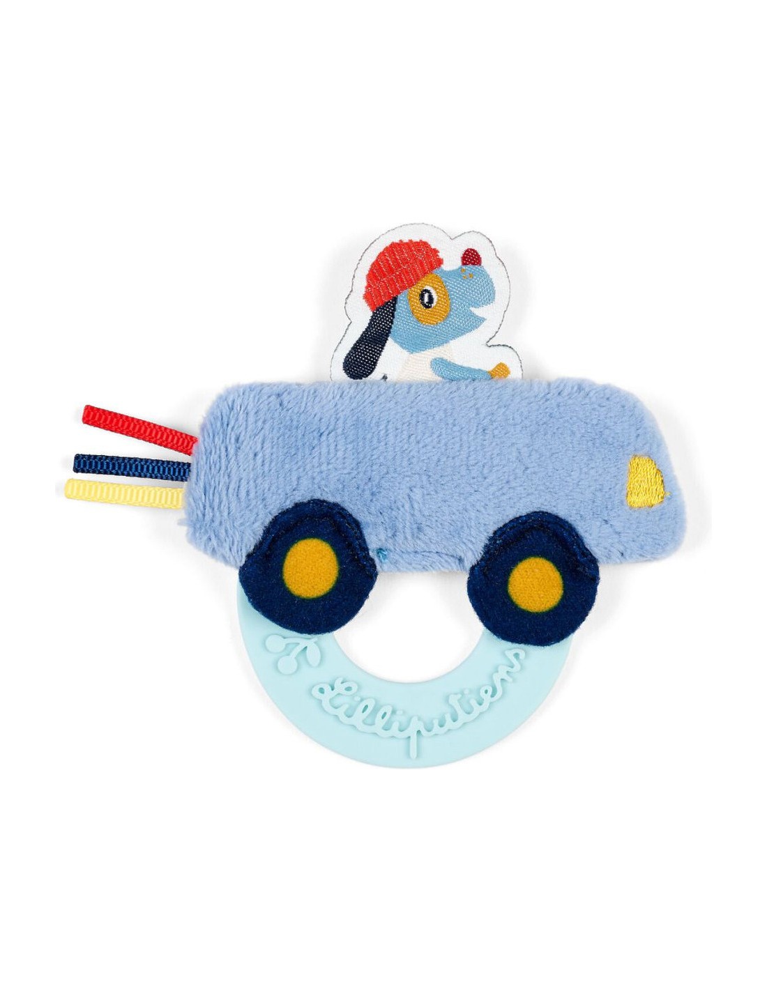 La touche Lilliputiens : des rubans colorés à attraper, une étiquette à l'effigie de Jules pour les petites mains curieuses et une voiture moelleuse qui invite au câlin. La taille du jouet a été spécialement conçue pour les petites mains : bébé n'aura aucun mal à être curieux et saisir ce qui se présente à lui !