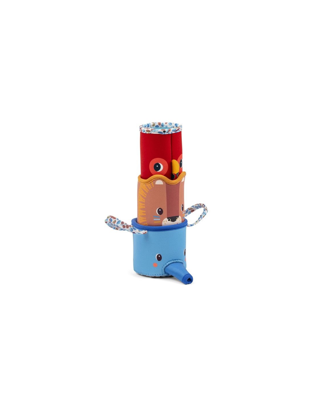 Ce que préfère Jack quand ils va se baigner, c’est éclabousser ! Avec son fidèle ami Gilles le perroquet et leur copain l'éléphant, les voilà tous les trois partis pour une chouette session d’arrosage à l’heure du bain. Ce jouet de bain convient aux bébés dès l’âge de 6 mois et aux enfants jusqu’à 6 ans et plus. Il se compose de trois gobelets, avec différents jets d’eau, pour s’éclater dans la baignoire ! D’abord, Jack le lion vous arrose par le museau grâce à l’ouverture qui se trouve juste sous son nez. Ensuite, c’est au tour de l'éléphant : en l'attrapant par ses grandes oreilles rigolotes, qui servent aussi de poignées, il vous aspergera par sa trompe comme un arrosoir ! Enfin, Gilles le perroquet vous arrose sur la tête, grâce à ses ouvertures situées par dessous ! Ce jeu d’arrosage n’a pas fini d’attiser la curiosité de bébé, et de développer la motricité des bambins ! Votre enfant va adorer encastrer les gobelets et découvrir les différents jets d’eau. Pratique, ce set de seaux pour le bain se compose de néoprène et de polyester : il sèche facilement et rapidement. Ils sont aussi encastrables, pour un rangement toujours plus aisé. Que ce soit pour se laver ou s’amuser dans l’eau par une chaude journée, ce jeu d’eau Lilliputiens promet de longues heures de fun ! C’est idéal pour stimuler la coordination et la motricité, mais aussi encourager la découverte des plus petits. Pour favoriser l’autonomie des plus grands, on peut utiliser ces gobelets de bain pour se rincer avant de sortir de l’eau. Dans leur format 12 x 8,5 cm, ces gobelets de bain en tissu se rincent à l’eau claire et doivent sécher après chaque utilisation. Au besoin, vous pouvez les laver en machine à 30°.