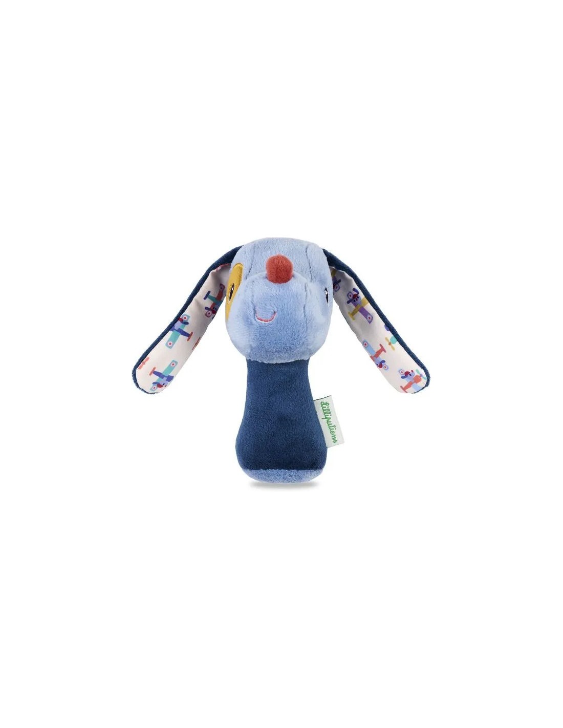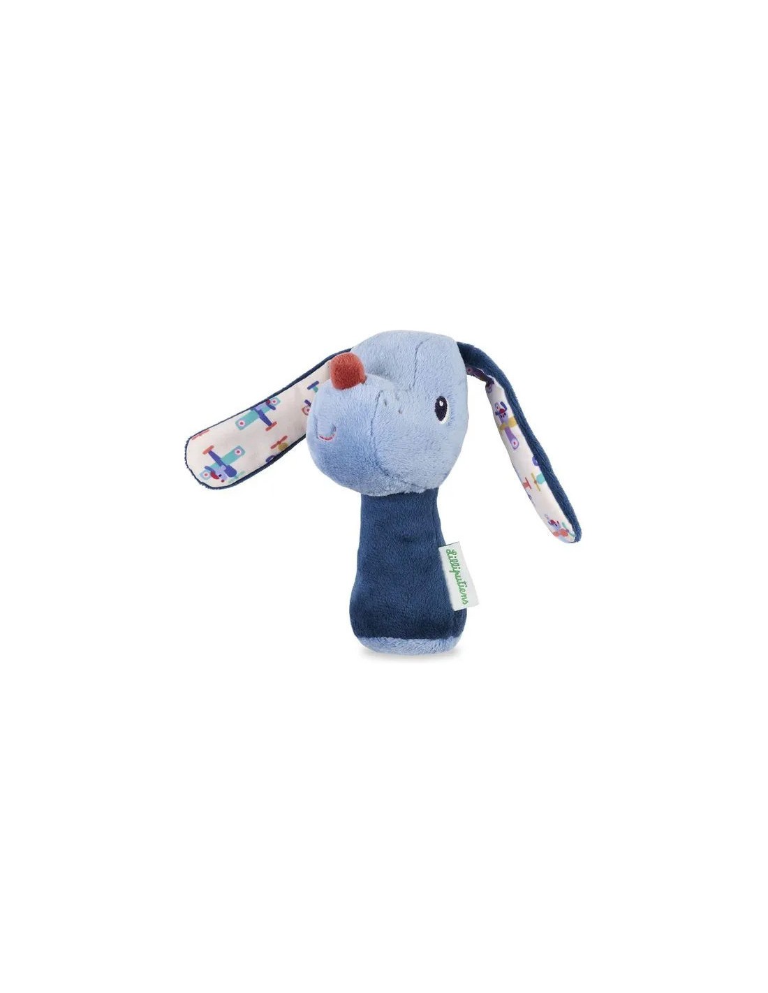 Impossible de résister au charme de Jules ! Avec son museau tout doux, sa truffe rouge rigolote et son sourire amusé, il attire immédiatement les câlins. Ses longues oreilles souples, décorées de ses expéditions à bord de son avion, invitent les petites mains à explorer. Lorsque l'enfant est en capacité de saisir le hochet et de le faire retentir, il stimule alors sa préhension et sa réflexion.