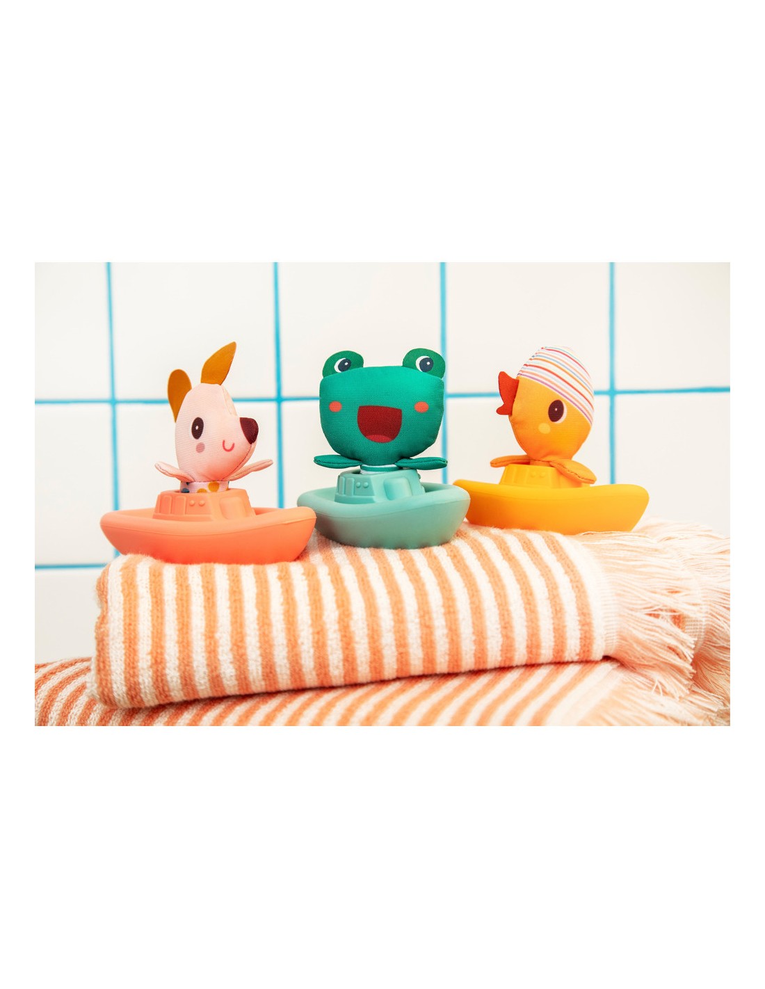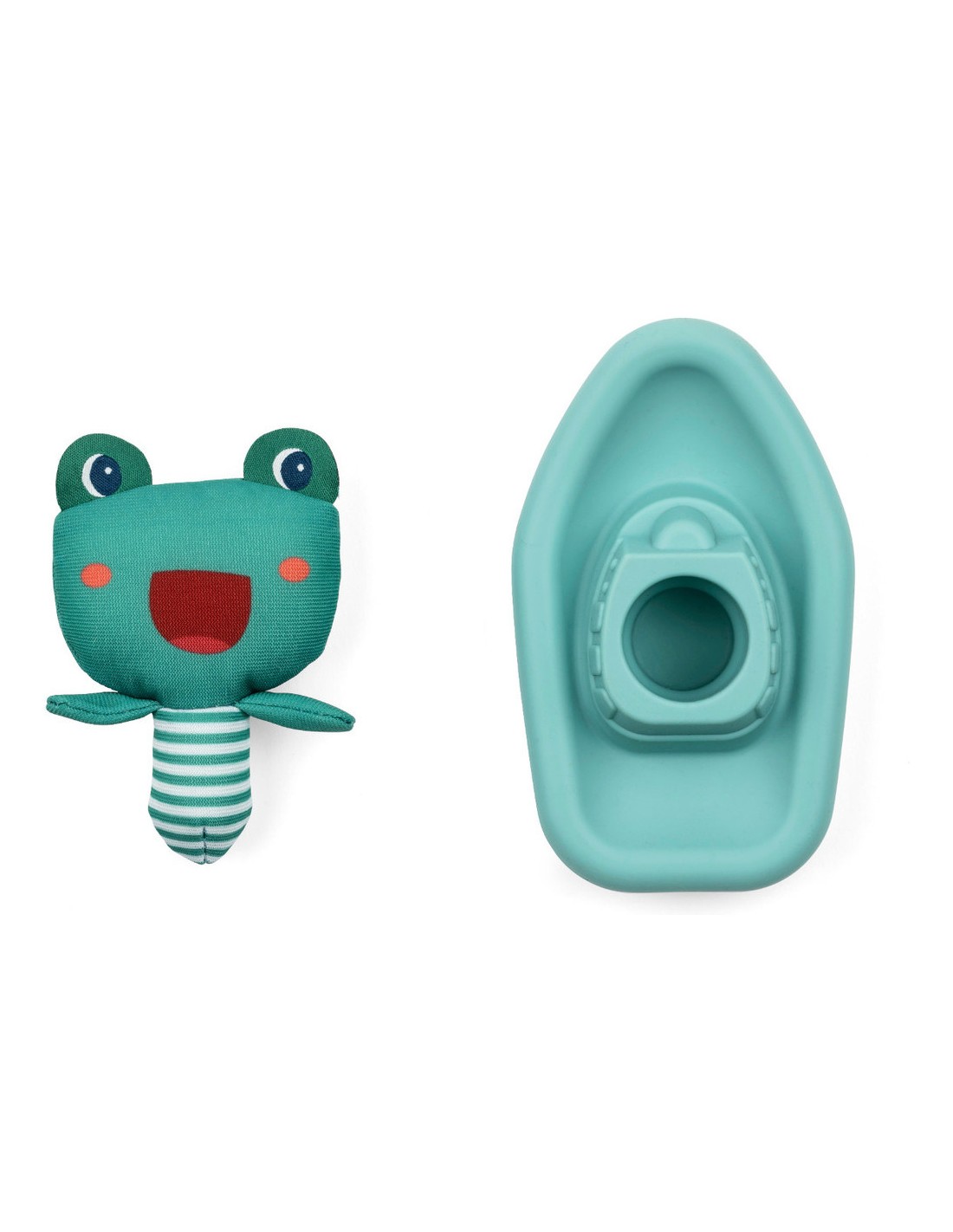Tous à bord avec James la grenouille ! Sur son bateau en silicone, il se laisse porter par les vagues du bain et invite bébé à samuser et à inventer ses propres aventures marines.