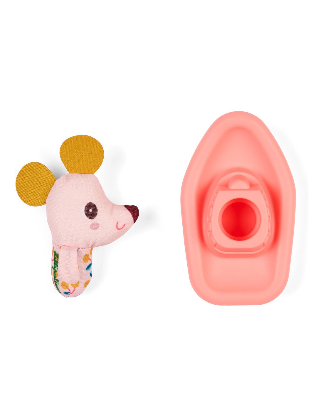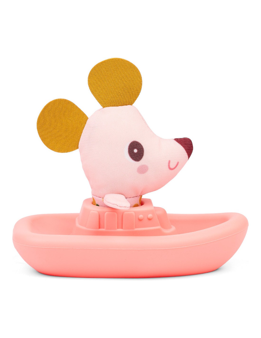 Embarquement immédiat avec Nina la souris ! Dans son joli bateau en silicone, elle vogue joyeusement sur leau du bain et accompagne bébé pour des moments de jeu tout doux.