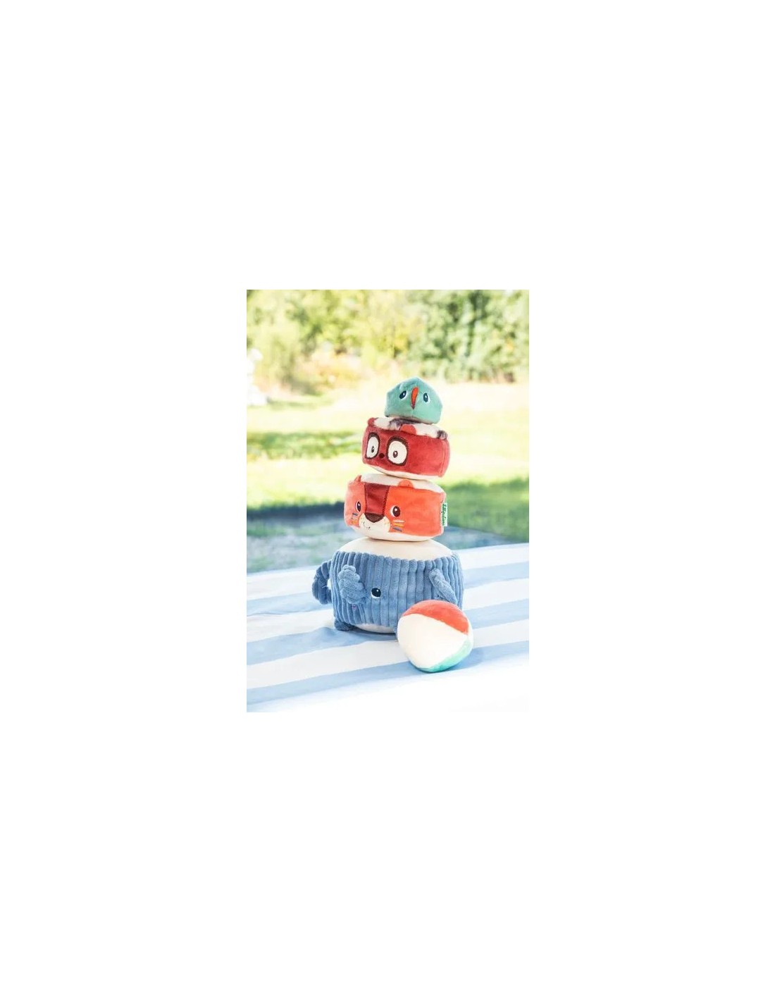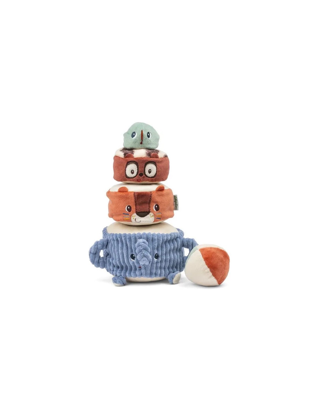 Bébé prendra plaisir à inventer tout un tas d'histoires pour jouer avec cette bande de copains, stimulant son imagination. Et quand la pyramide est dressée… place au défi amusant : lancer la balle en tissu pour la faire basculer et s’écrouler dans un éclat de rires ! Composé de polyester, ce jeu de premier âge est lavable en machine à 30°.