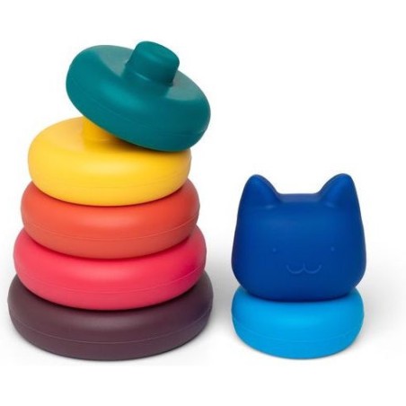 Tour empilable chat Arc-ciel - Jouet d'éveil - Little L, un jouet d'éveil composé de 7 pièces en silicone à empiler, parfait pour développer la motricité fine de bébé dès 6 mois.